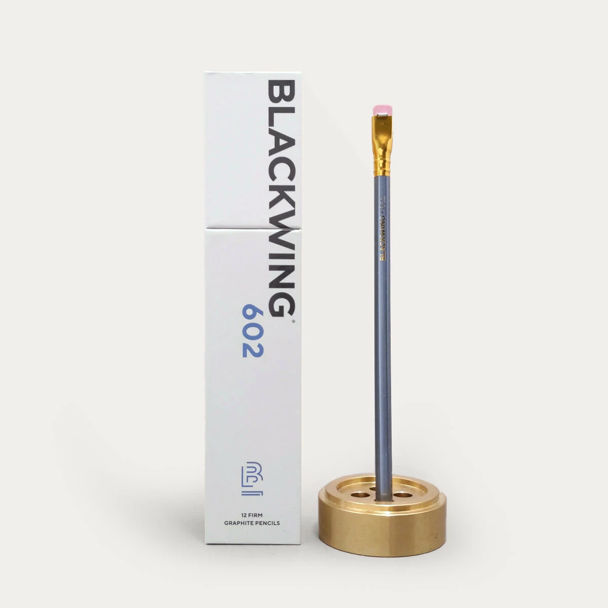 One of Blackwing’s four core pencils, the 602 pencil features a firm and smooth graphite core that helps it deliver on its promise of “Half the Pressure, Twice the Speed.” It has a gunmetal grey finish and iconic square Blackwing ferrule with a pink eraser.