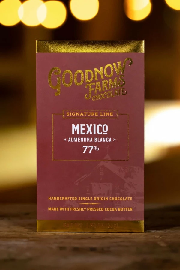 Almendra Blanca (meaning “white almond”) is named for the white colored cacao bean the chocolate is made from, grown on a family farm in Tabasco, Mexico. This award-winning chocolate bar has notes of creamy citrus and hazelnut.