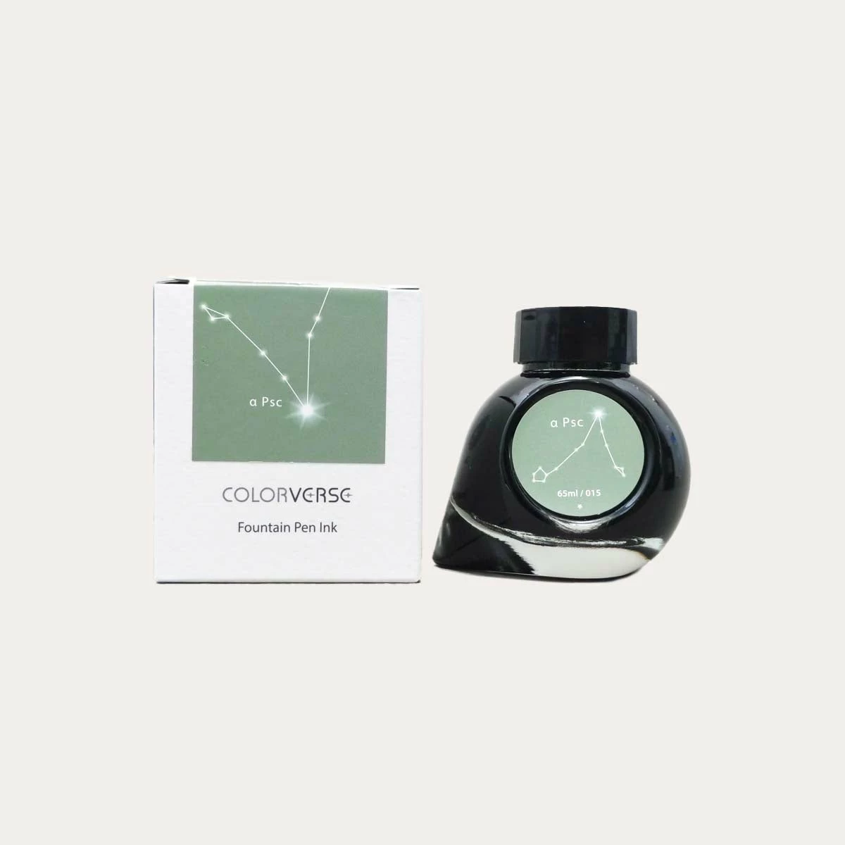 The Project Constellation series of inks from South Korean ink company Colorverse is inspired by different constellations in the night sky. Alpha Psc refers to Alrescha, the brightest star in the constellation Pisces. This ink is a sage green color.