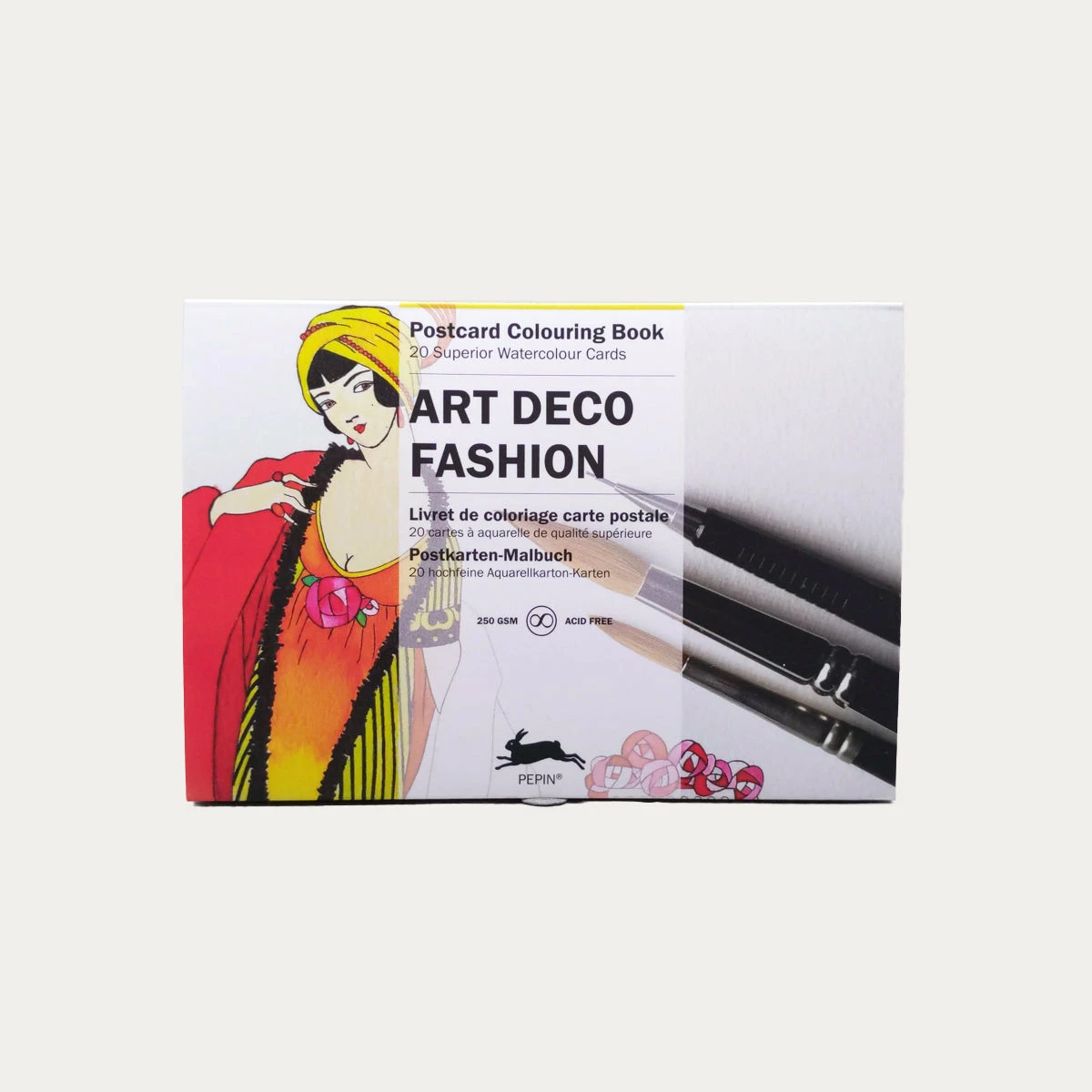 Enjoy painting twenty different art deco fashion designs on these heavyweight, mailable watercolor postcards! The lovely fashion designs have plenty of variety for hours of fun, with subtle linework that won’t mar your finished paintings and space on the back for writing, addressing, and stamping your postcards.