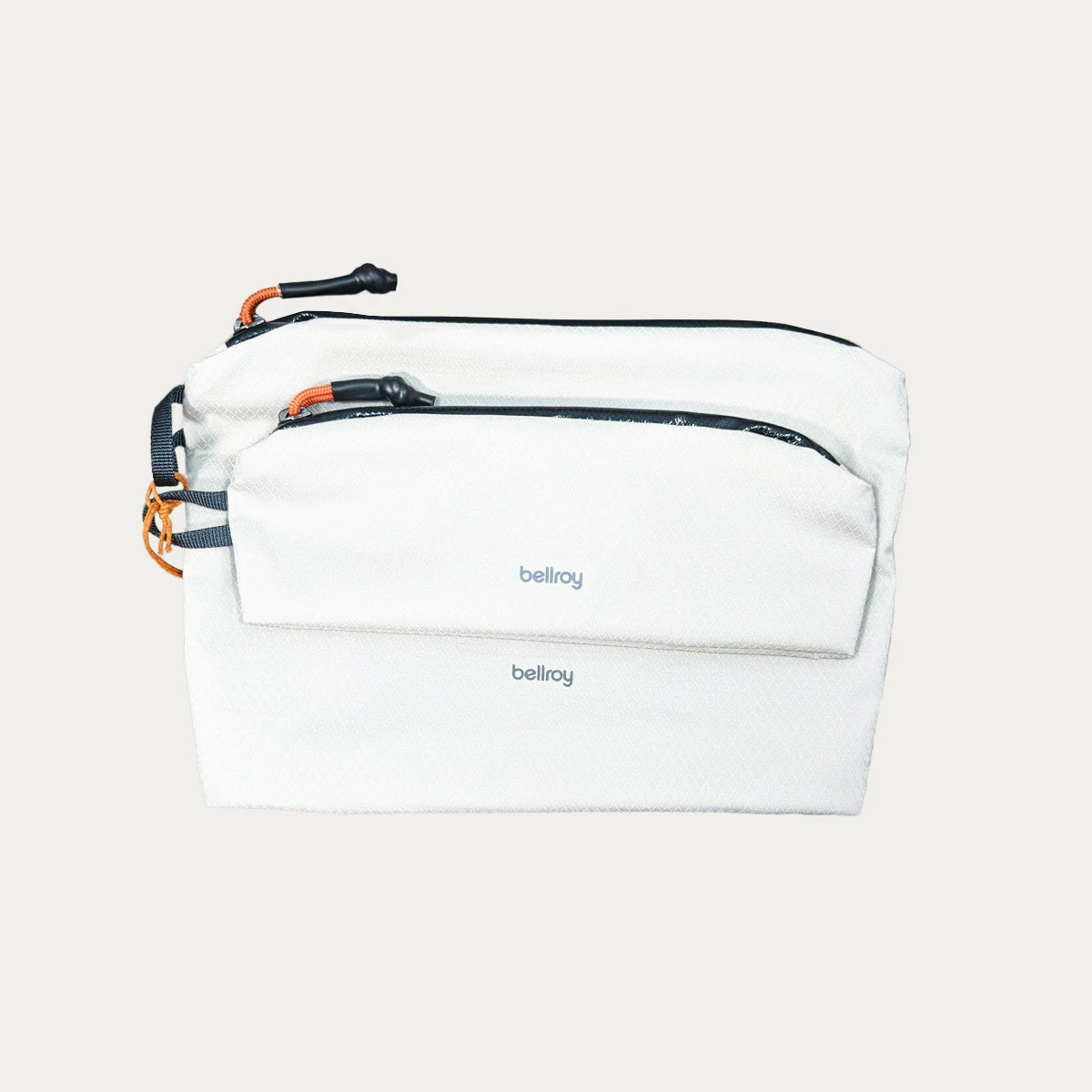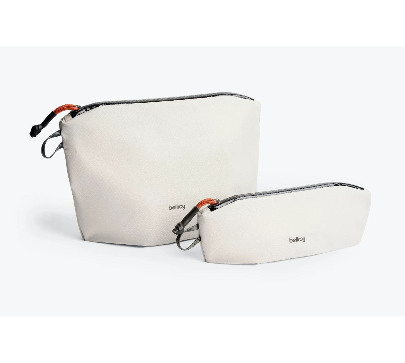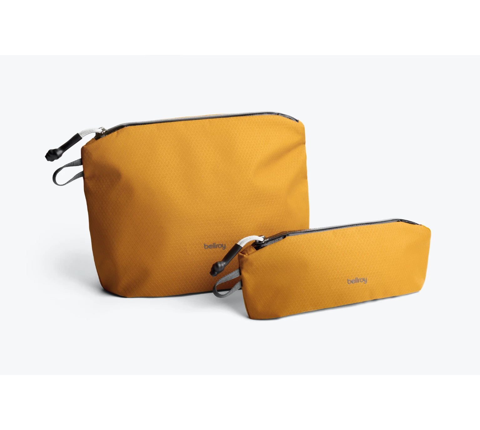 Keep your essentials organized with this set of two pouches. Made from recycled plastic bottles, their fabric is water-resistant, lightweight, and durable. The pouches are super slim and pack down flat when they’re empty, so they’re easy to keep tucked away in your bag for whenever you need them—perfect for travel as well as everyday use. The set includes a pencil case and a taller pouch with two internal pockets.