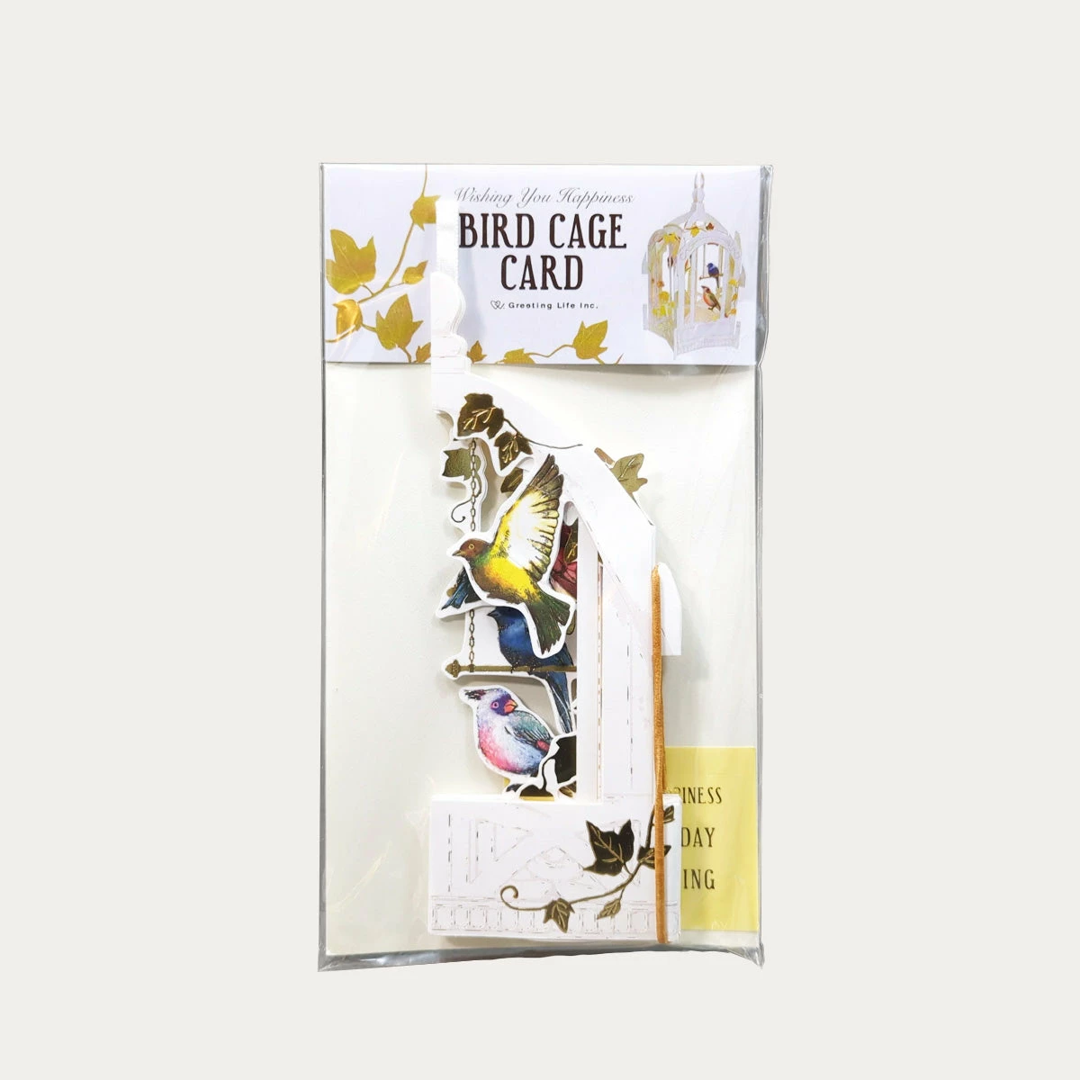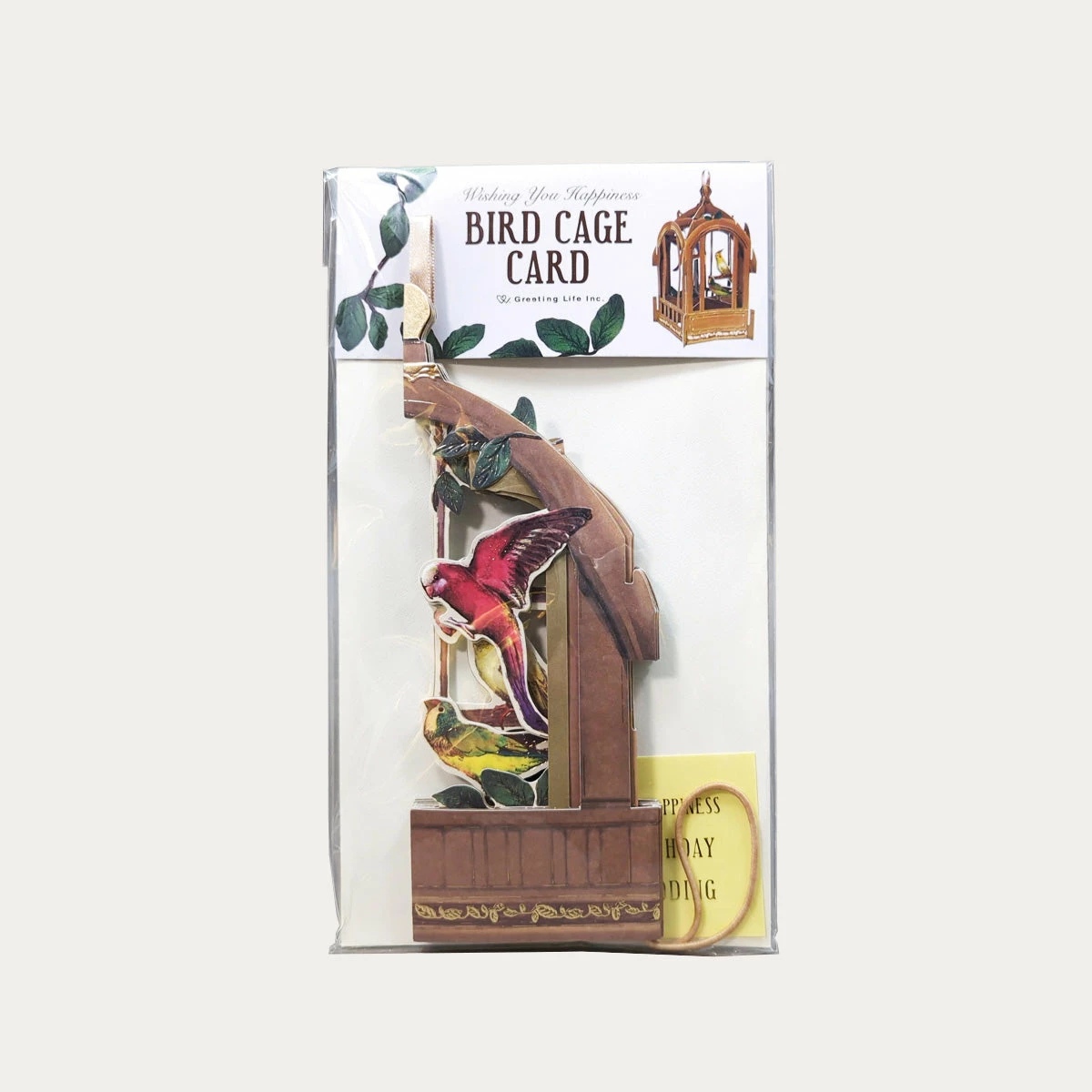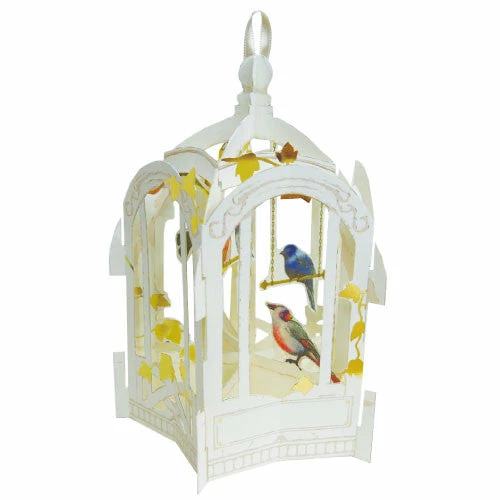 These beautiful pop-up cards unfold to reveal an aviary filled with colorful birds! Write a message on the folded card, then open it up to see the airy bird cage take shape. The card comes with stickers that say “Happy birthday,” “Happy wedding,” and “Wishing you happiness” so you can customize your message. The bird cage can be hung from a loop in the top.
