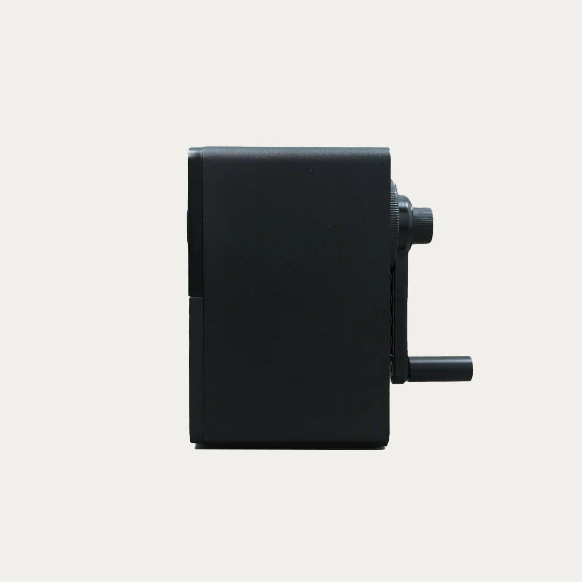 Blackwing’s Desktop Sharpener has a classic, timeless appearance and a great design that will sharpen your pencils to perfection and last a lifetime. Made of black metal and polymer, it’s weighty and sleek, with a drawer to catch shavings that clicks nicely into place. The sharpener mechanism uses a helix blade that can be adjusted with the dial on the crank to sharpen your pencil to a fine or a blunt point, with an automatic brake to prevent over-sharpening.