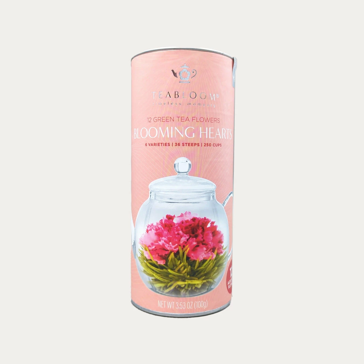 Place a teabloom inside a clear teapot and watch the blossom unfurl as it infuses. This set of twelve blooming green teas bound with edible flowers is scented with different floral and fruit flavors that are as delicious to drink as they are beautiful to look at. Watching these teas bloom open is a relaxing, meditative experience that will invite you to take a pause and enjoy sipping slowly.