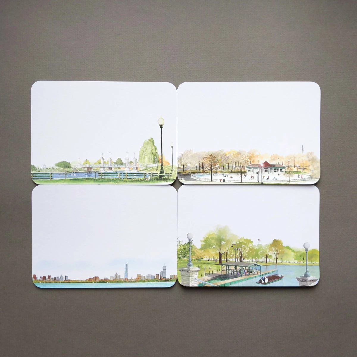 - Set of eight flat notecards and envelopes (two of each illustration)