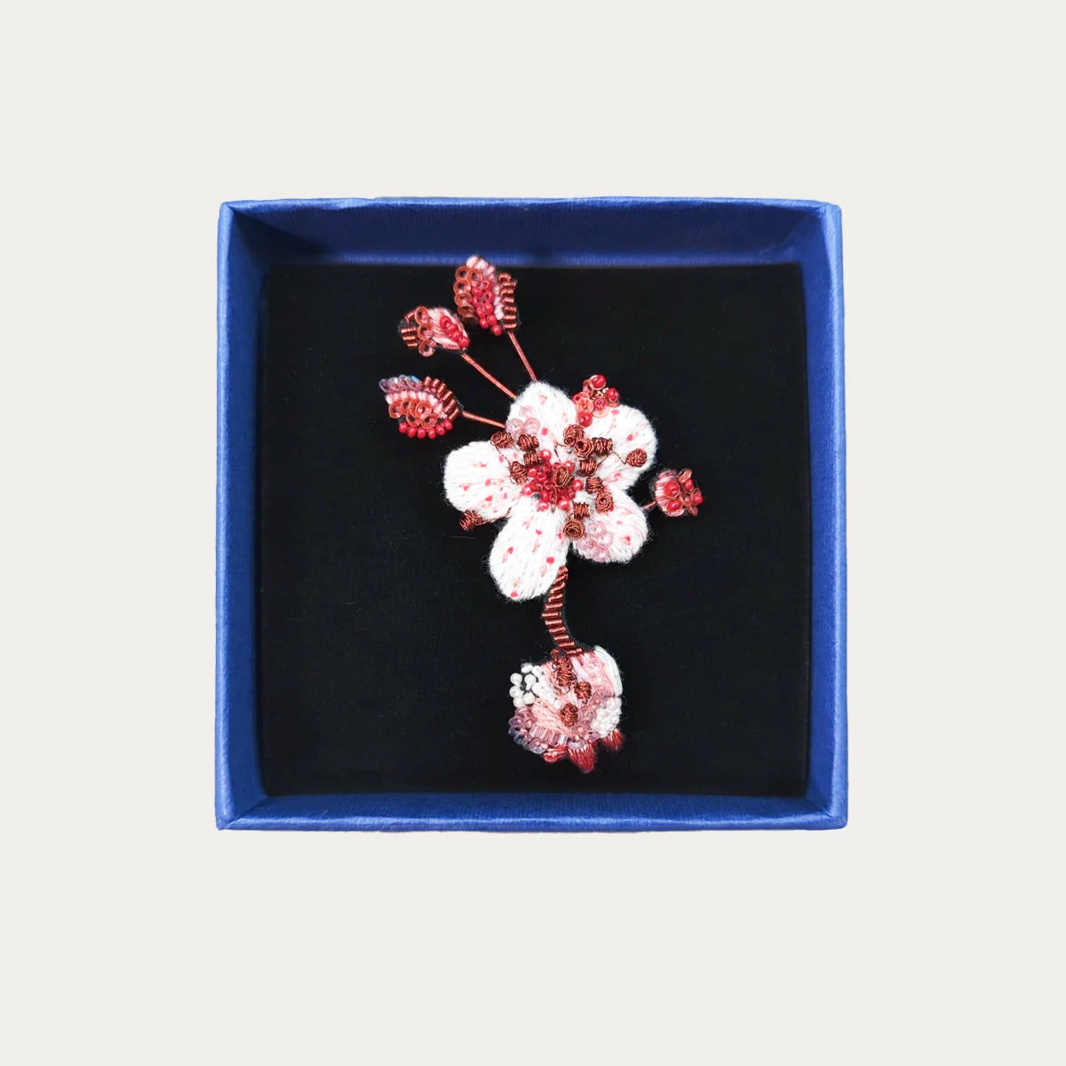 Trovelore’s stunning handmade brooches are as much tiny artworks as they are pieces of jewelry. Each pin is embroidered by hand with thread, sequins, beads, and wires to create lifelike textures. Their designs are inspired by flora and fauna found in nature, and draw on the brilliant and subtle colors and organic textures of the world all around us.