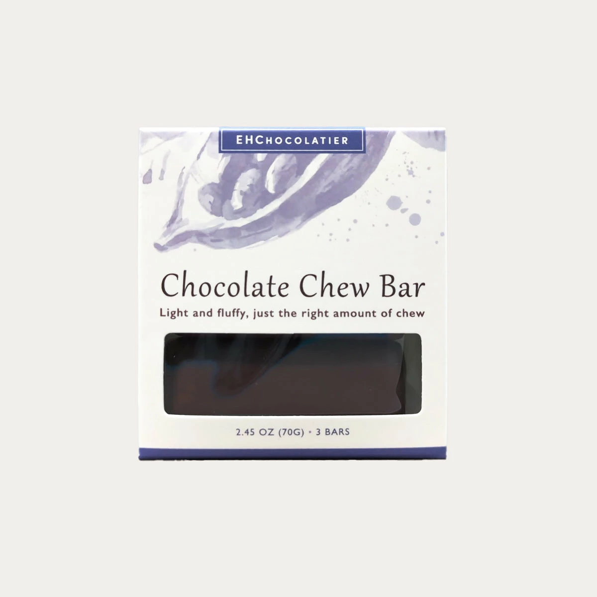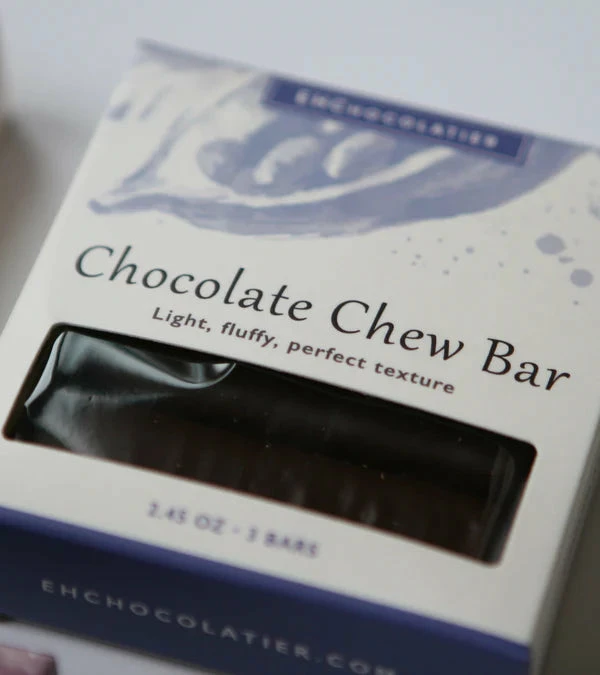From local Cambridge-based EHChocolatier, this Chocolate Chew bar is light and fluffy, filled with pillowy nougat and sumptuous chocolate flavor.