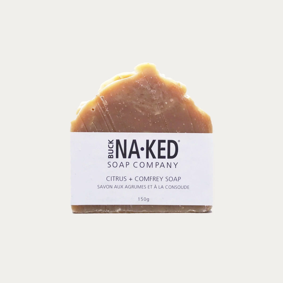 Buck Naked soaps are made from all-natural, vegan, chemical-free ingredients that are gentle and soothing on the skin. Their Citrus and Comfrey Soap adds luster to dull, dry, and sun-damaged skin, with added wheat germ oil for a dose of Vitamin E.