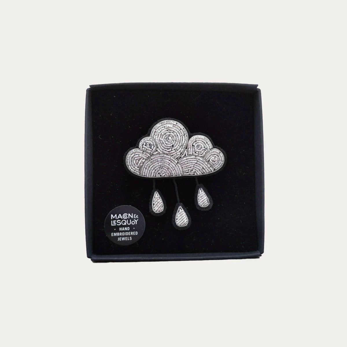 Created by French designers Macon & Lesquoy, these fanciful brooches add color and cheer to any outfit. Each brooch is hand-embroidered in a workshop in Pakistan, using the “cannetille” technique on a felt background.