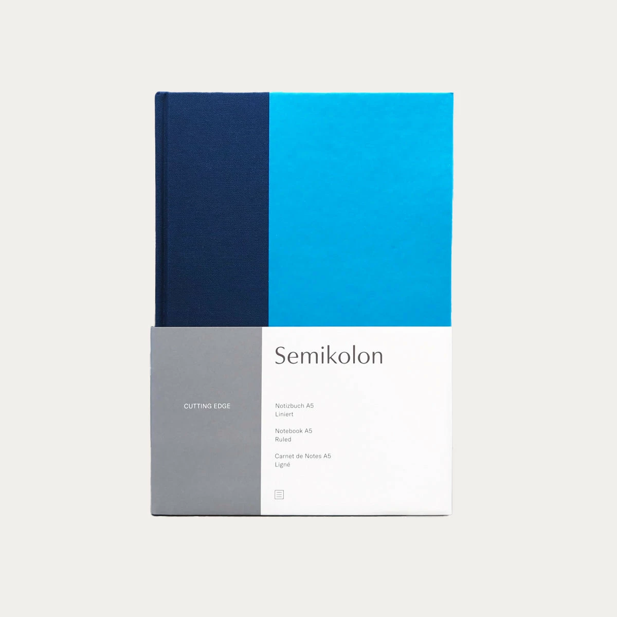 Semikolon’s Cutting Edge notebooks play boldly with color. Their two-tone colorblock design contrasts a bookcloth-covered spine and back cover with a splash of colored paper on the front cover. Inside, coordinating endpapers and a bookmark join the playful color scheme. It’s hard to resist collecting all the color combinations!