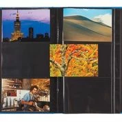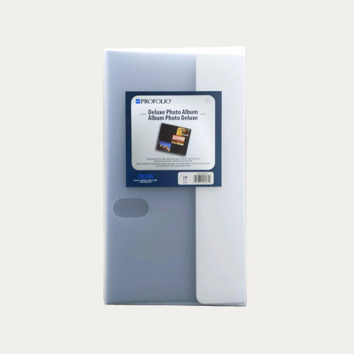 This simple and elegant photo album has grey fabric hardcovers, a plaque on the spine so you can label the album, and acid-free, photo-safe sleeves inside. It displays six 4″x6″ photos when you open it up (three per page).