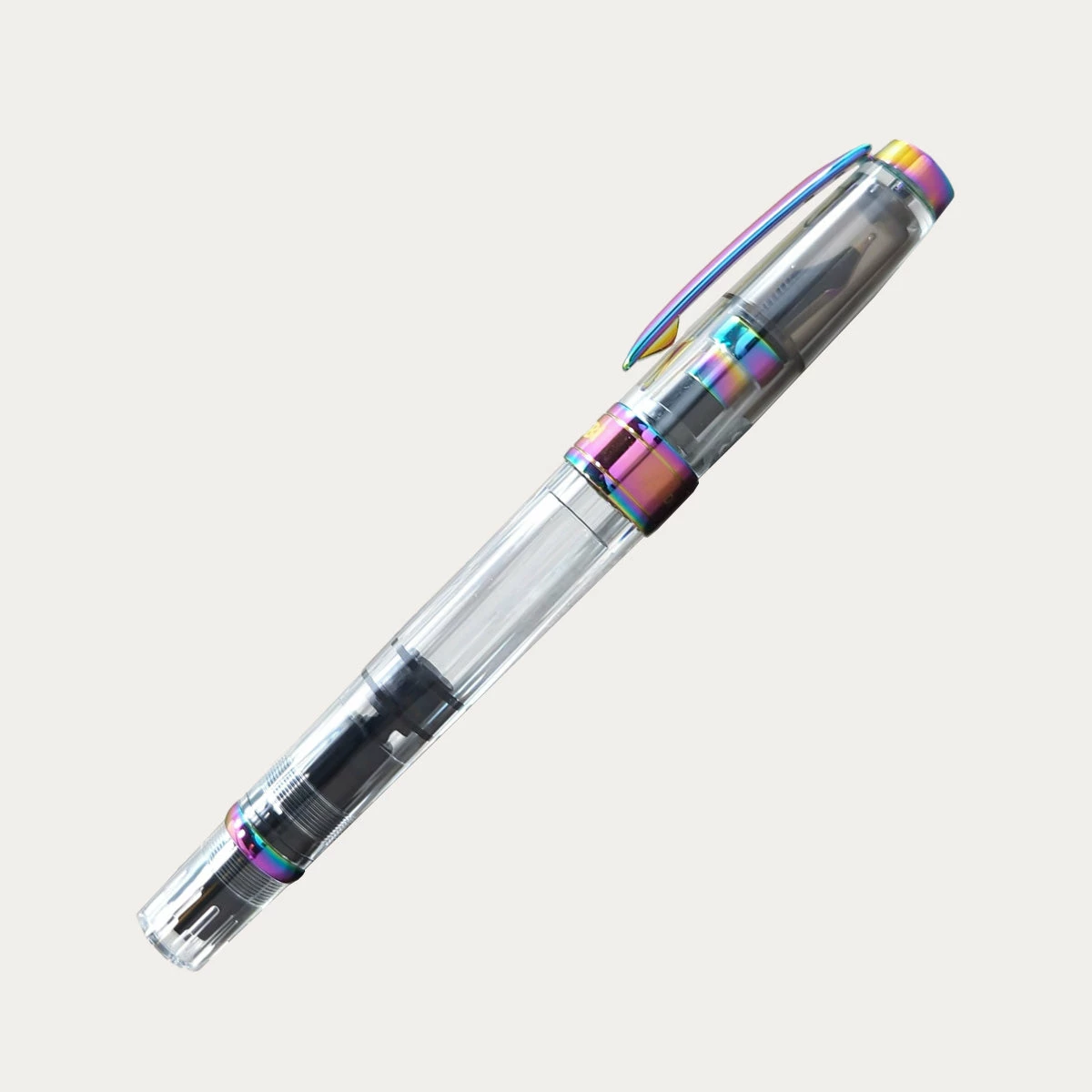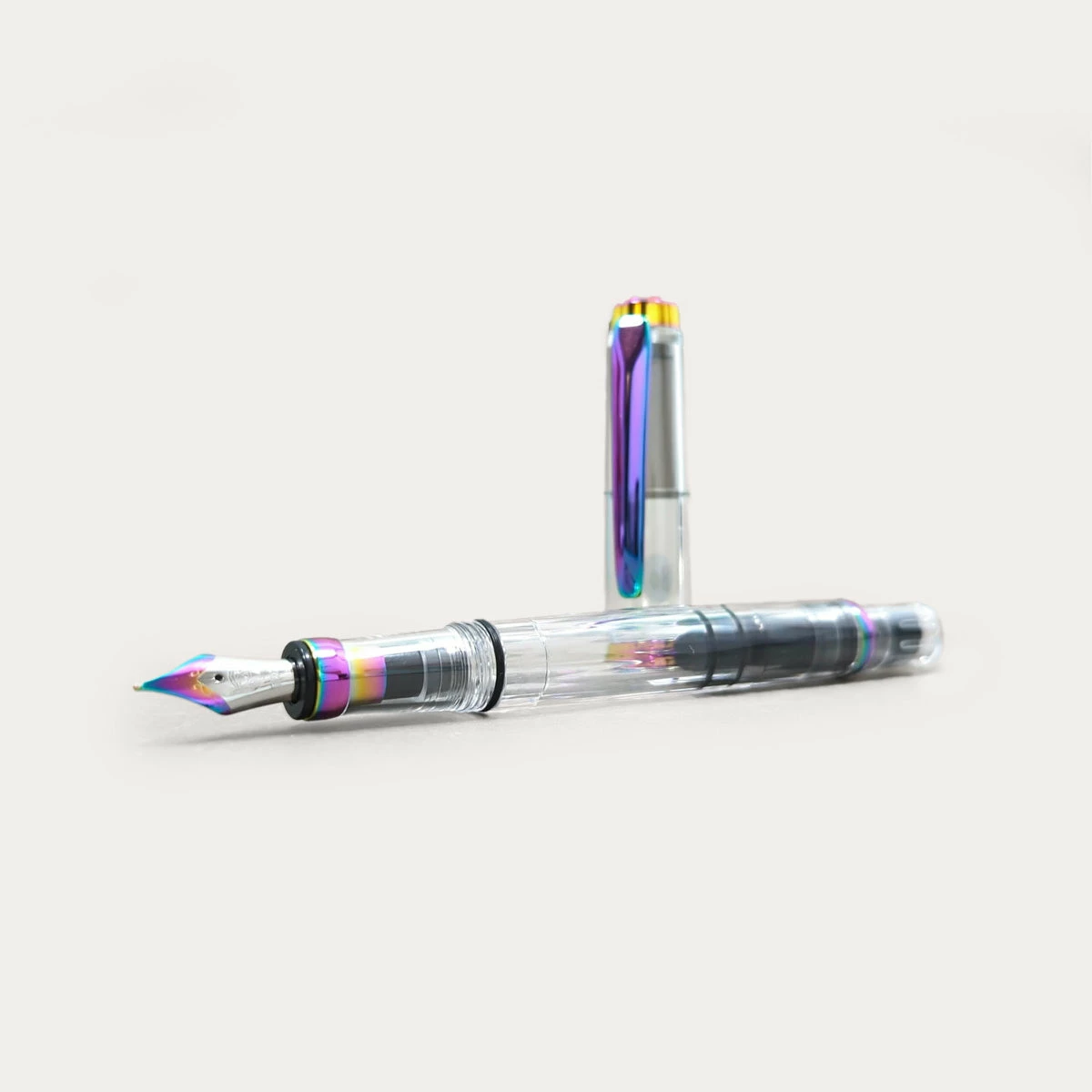 The Diamond 580 Iris is a deluxe edition of TWSBI’s flagship pen, featuring an iridescent rainbow finish on its metal accents, so no two pens are exactly alike. Combining the best of modern design with the best of the traditional fountain pen, it’s a high-quality, stand-out pen you’ll love to write with every day. Comfortable and well-balanced, it has a smooth-writing nib that makes writing effortless. Its transparent body is faceted like a diamond to catch the light and show off the ink inside. The Diamond 580 Iris has a built-in piston filling mechanism that’s easy to use, and the pen can be disassembled for cleaning.