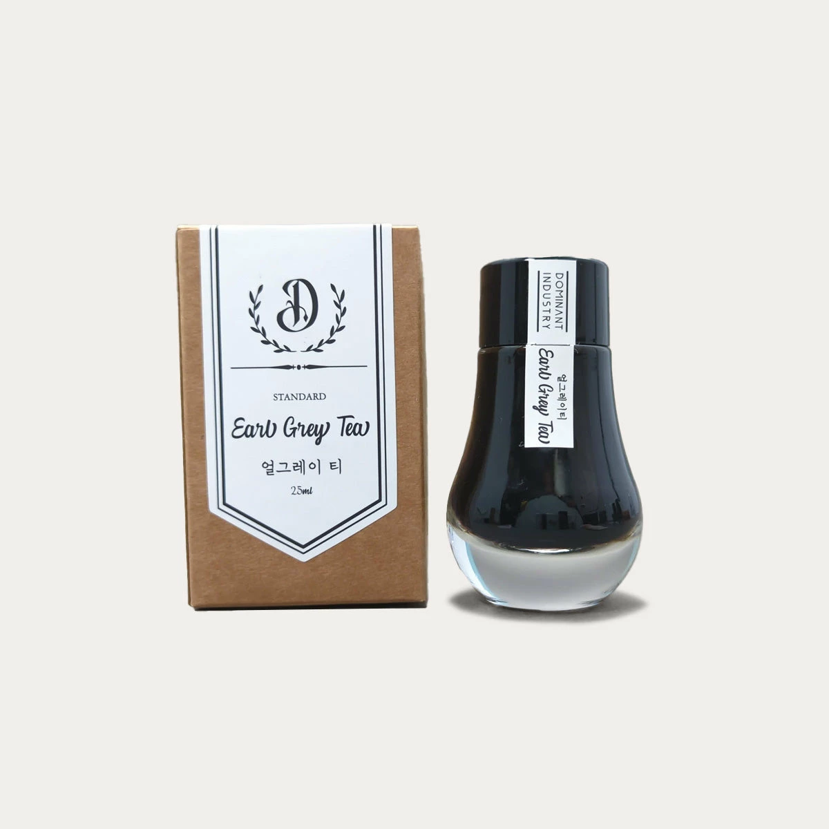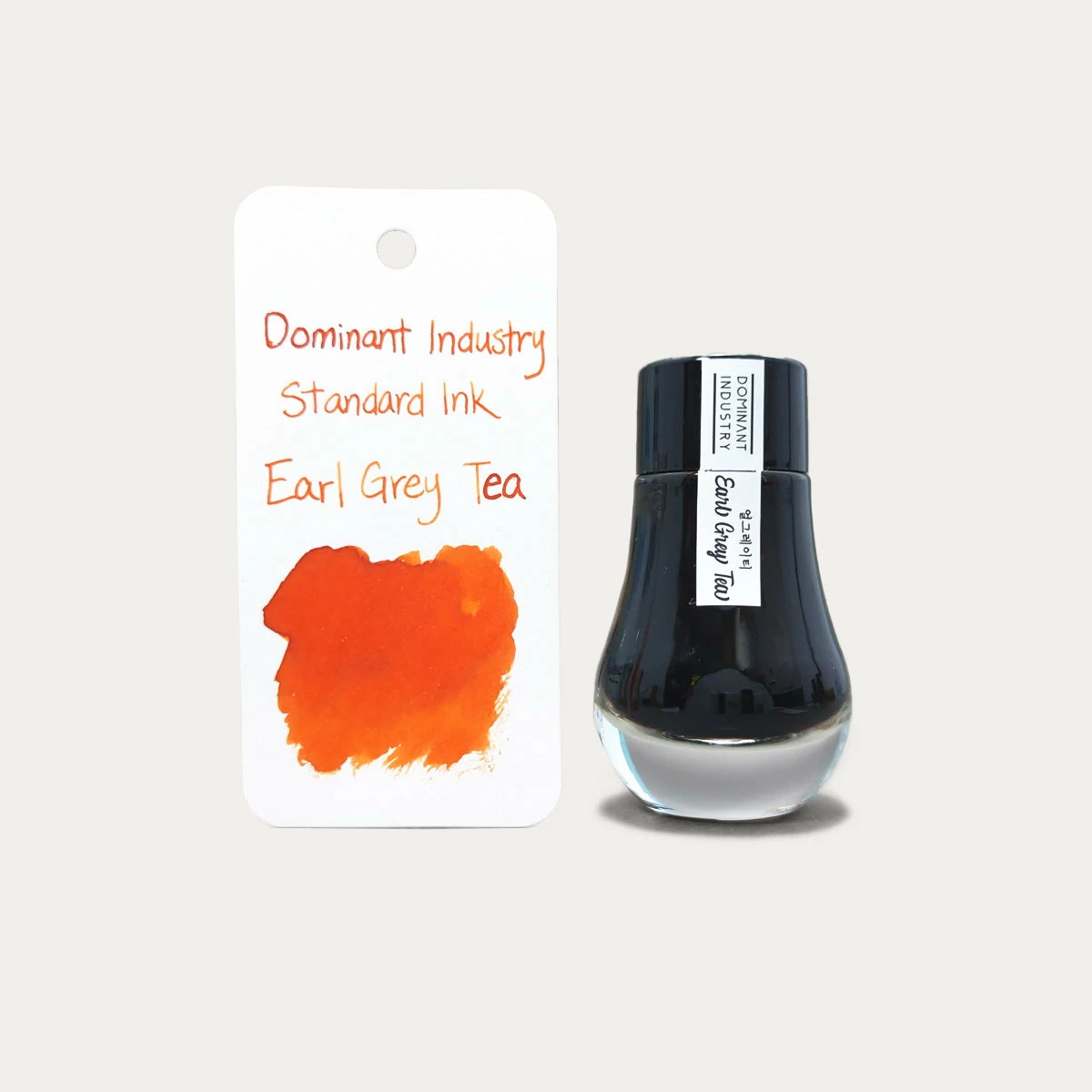 Korean Dominant Industry inks come in lightbulb-shaped glass bottles, reflecting the brand’s goal of capturing light in their ink colors. The ink inside is as great as the bottles are eye-catching. Earl Grey Tea is part of their Standard Series of lovely, expressive ink colors. It’s a warm deep orange color.