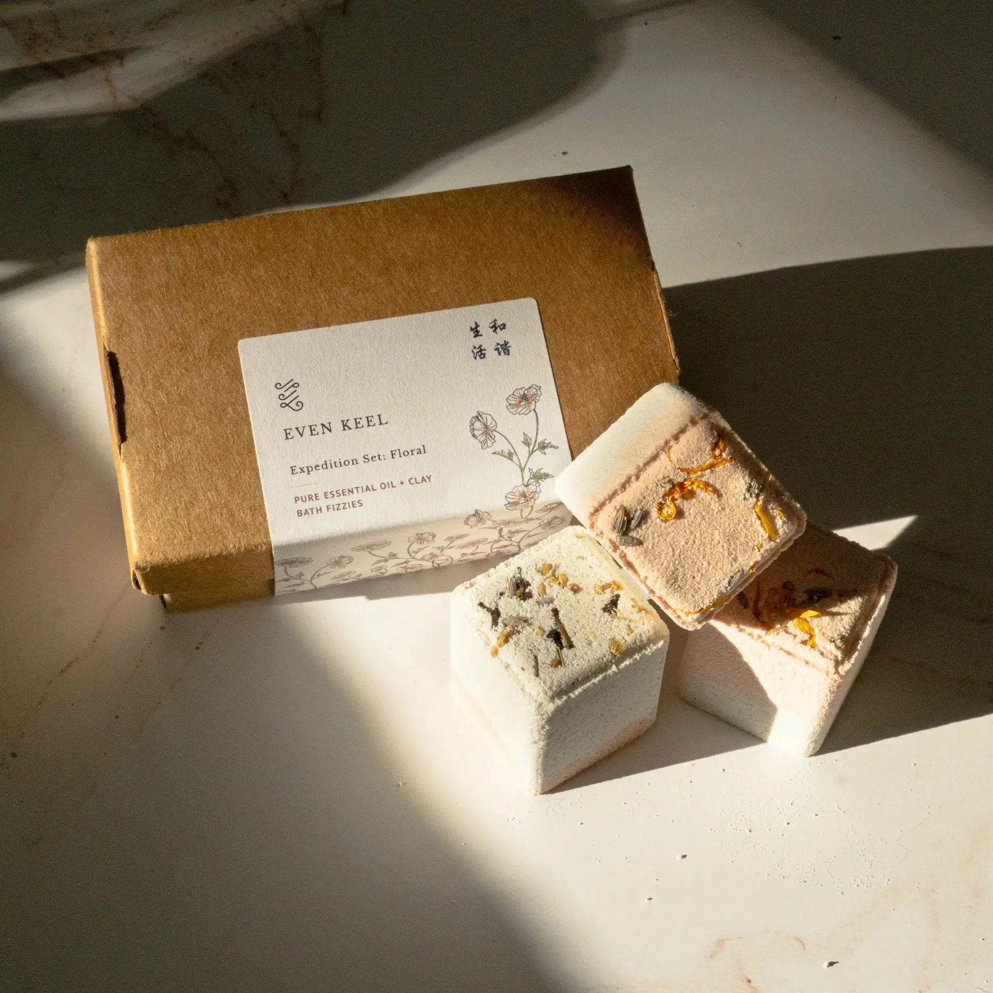 This set of six fizzy bath bombs provides six heavenly aromatherapy sessions while you soak. Each bath bomb is colored naturally with clays, scented with essential oils, and infused with cocoa butter to nourish your skin. The Expedition Set is a great way to try several scents at once, and it’s beautifully packaged to make a lovely gift.