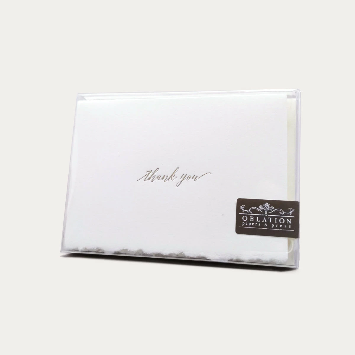 Oblation’s boxed thank-you notes feature elegant designs letterpress printed onto thick cotton card stock.