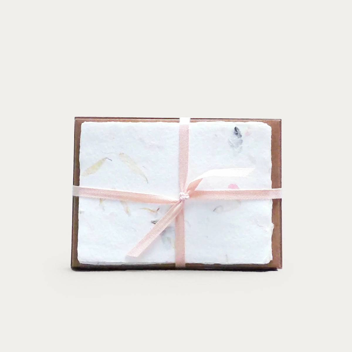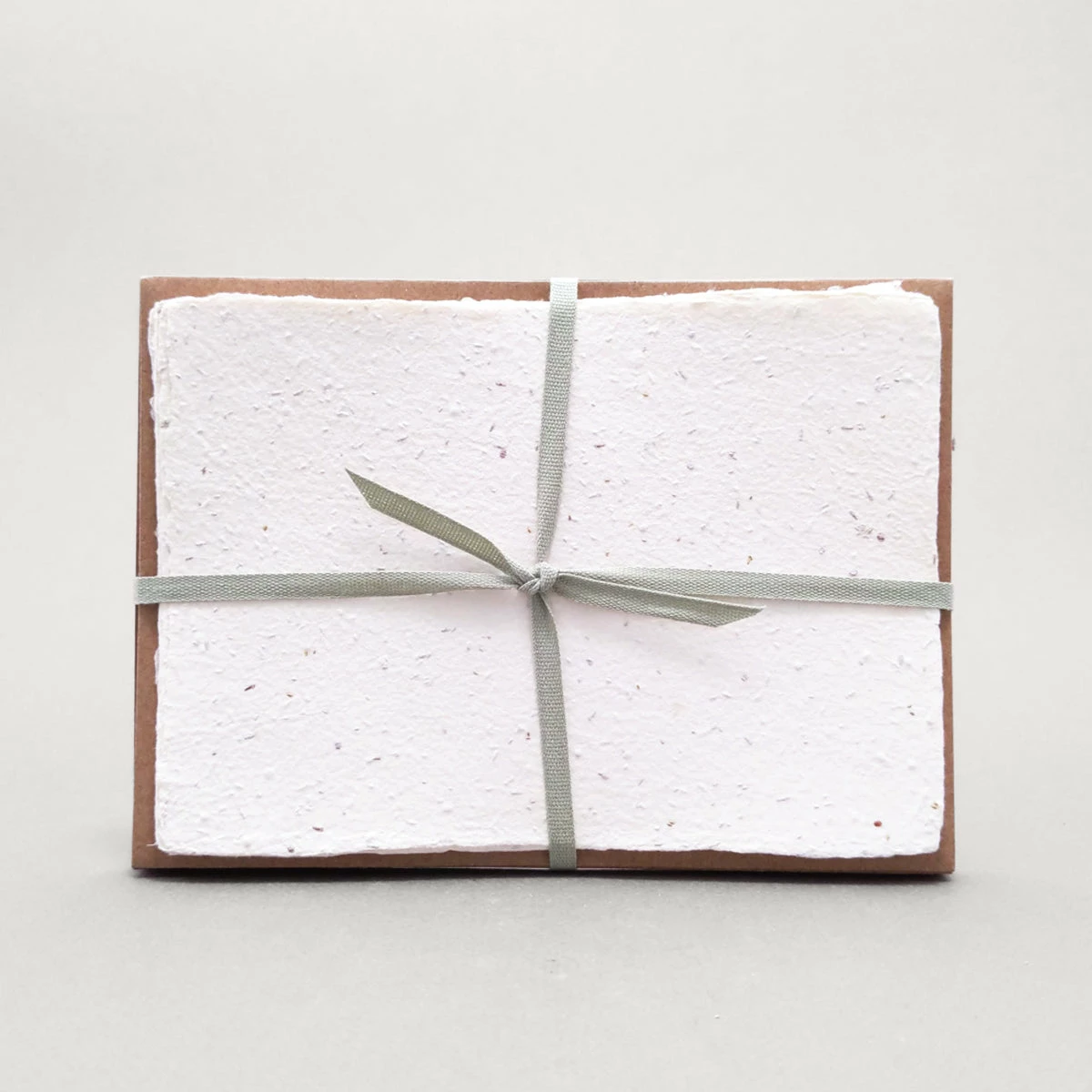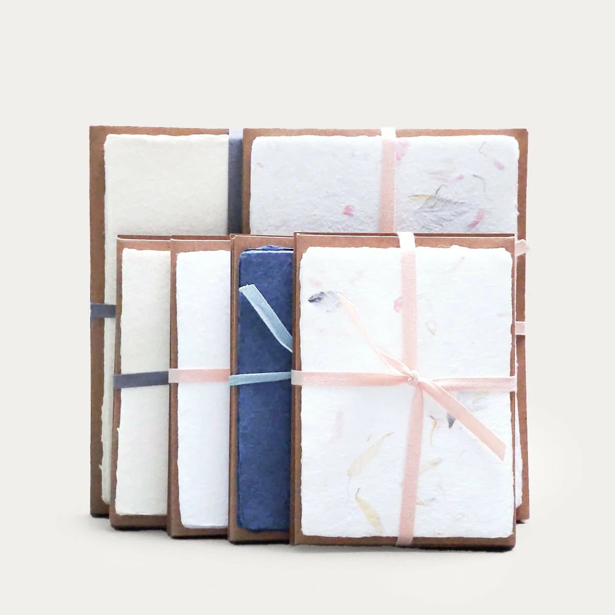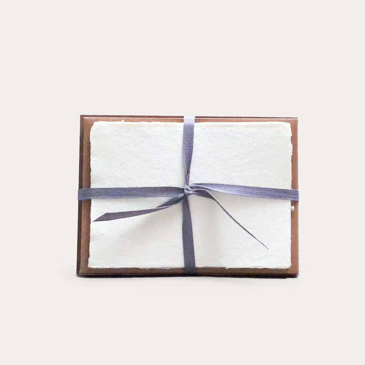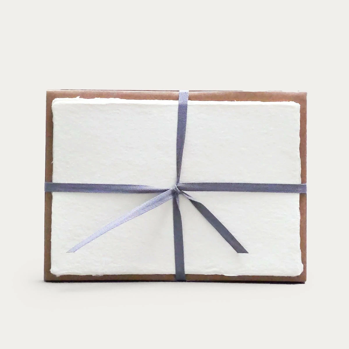 Deliciously textured and deckle-edged, these notecards by Oblation Papers are handmade from cotton recycled from the garment industry. Tied up with beautiful Italian ribbon, they are a feast for your eyes and hands.