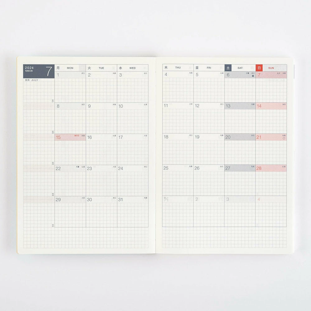 The Avec version of the Hobonichi Techo is the same great planner as the A5 Cousin planner, but split into two 6-month books that are slim and lightweight. Please note that the Avec planner is only available in Japanese (but the dates are printed in numerals, so they can still be used by English speakers).