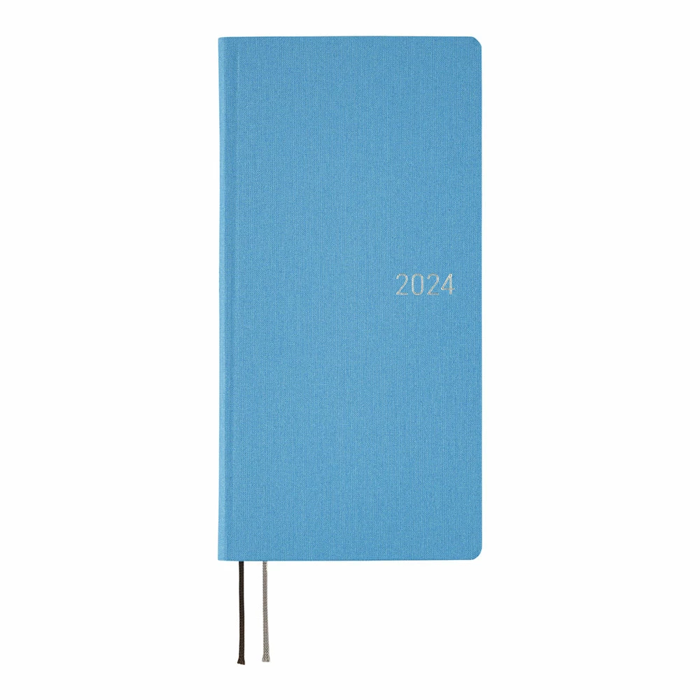Slim and lightweight, the Weeks is made with thin but high quality Tomoe River paper. It has sturdy covers and comes with a clear pocket you can stick on to the inside of the cover, as well as two ribbon bookmarks you can use to keep your place.