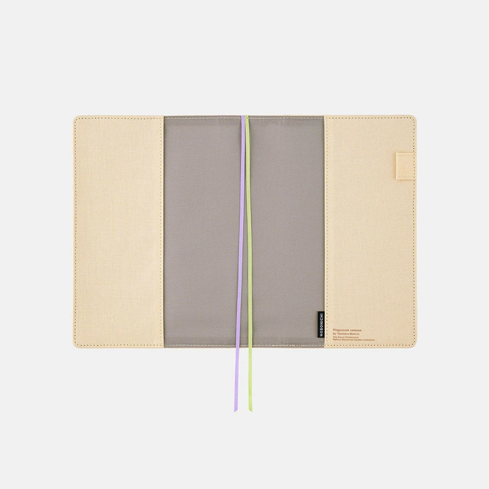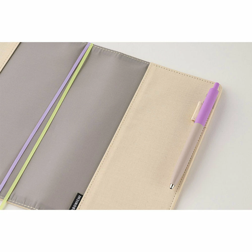 Carry your Hobonichi Cousin planner in this handy cover, which can double as a wallet or case for all your daily necessities. It has pockets to slide in the covers of your Cousin planner, plus lots of card pockets for credit cards, business cards, or small stationery items. It has two bookmarks to help you keep your place, and the cover has two pen loops that serve to keep it closed when a pen is inserted.