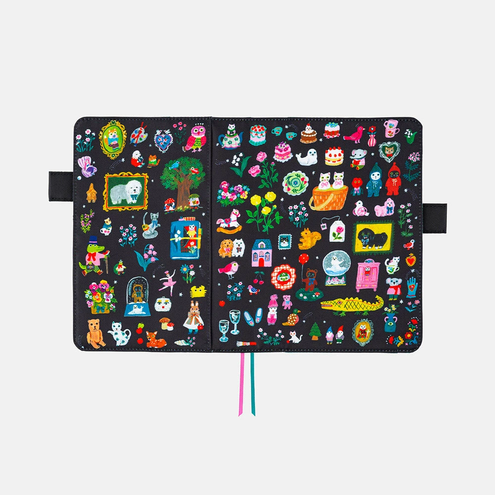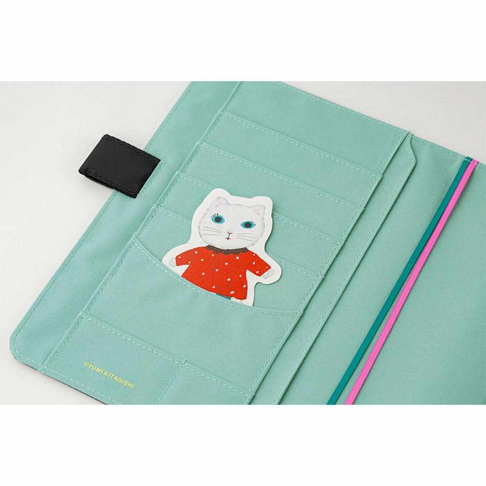 Carry your Hobonichi Cousin planner in this handy cover, which can double as a wallet or case for all your daily necessities. It has pockets to slide in the covers of your Cousin planner, plus lots of card pockets for credit cards, business cards, or small stationery items. It has two bookmarks to help you keep your place, and the cover has two pen loops that serve to keep it closed when a pen is inserted.
