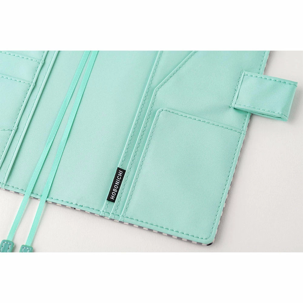 Carry your Hobonichi Original planner in this handy cover, which can double as a wallet or case for all your daily necessities. It has pockets to slide in the covers of your Original planner, plus lots of card pockets for credit cards, business cards, or small stationery items. It has two bookmarks to help you keep your place, and the cover has two pen loops that serve to keep it closed when a pen is inserted.