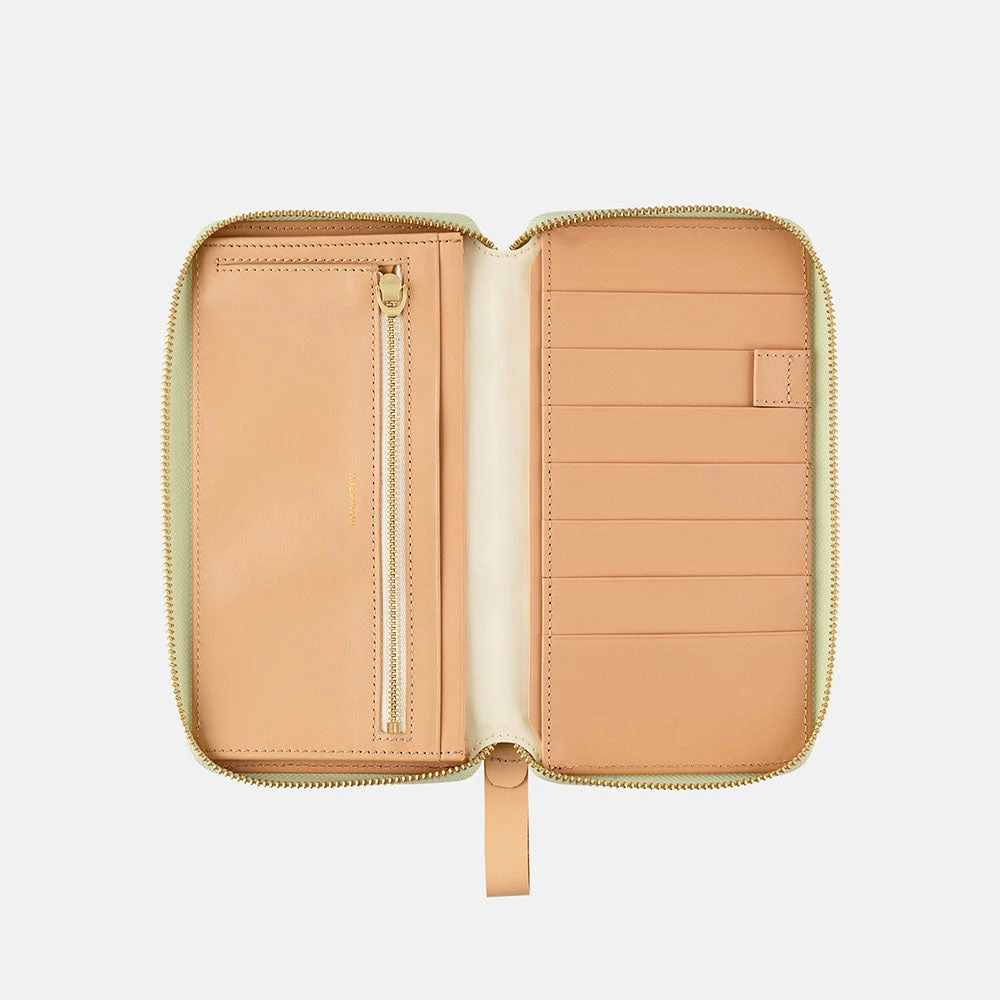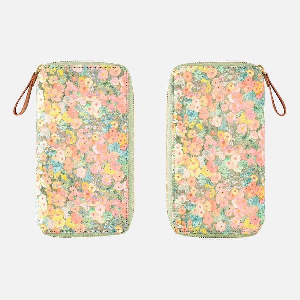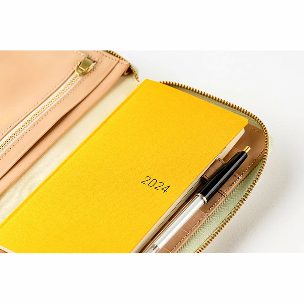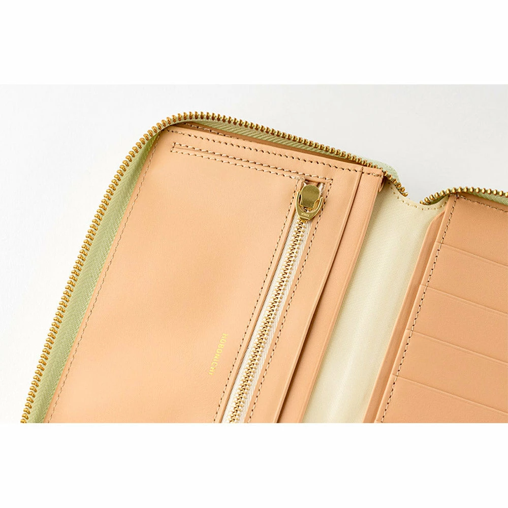 Carry your Hobonichi Weeks planner in this handy cover, which can double as a wallet or case for all your daily necessities. It has a pocket to slide in your Weeks planner and additional long pockets for extra papers or bills, plus a pen loop, a zipper pocket for carrying small items, and card pockets for credit cards, business cards, or small stationery items. The cover zips closed to protect all its contents.