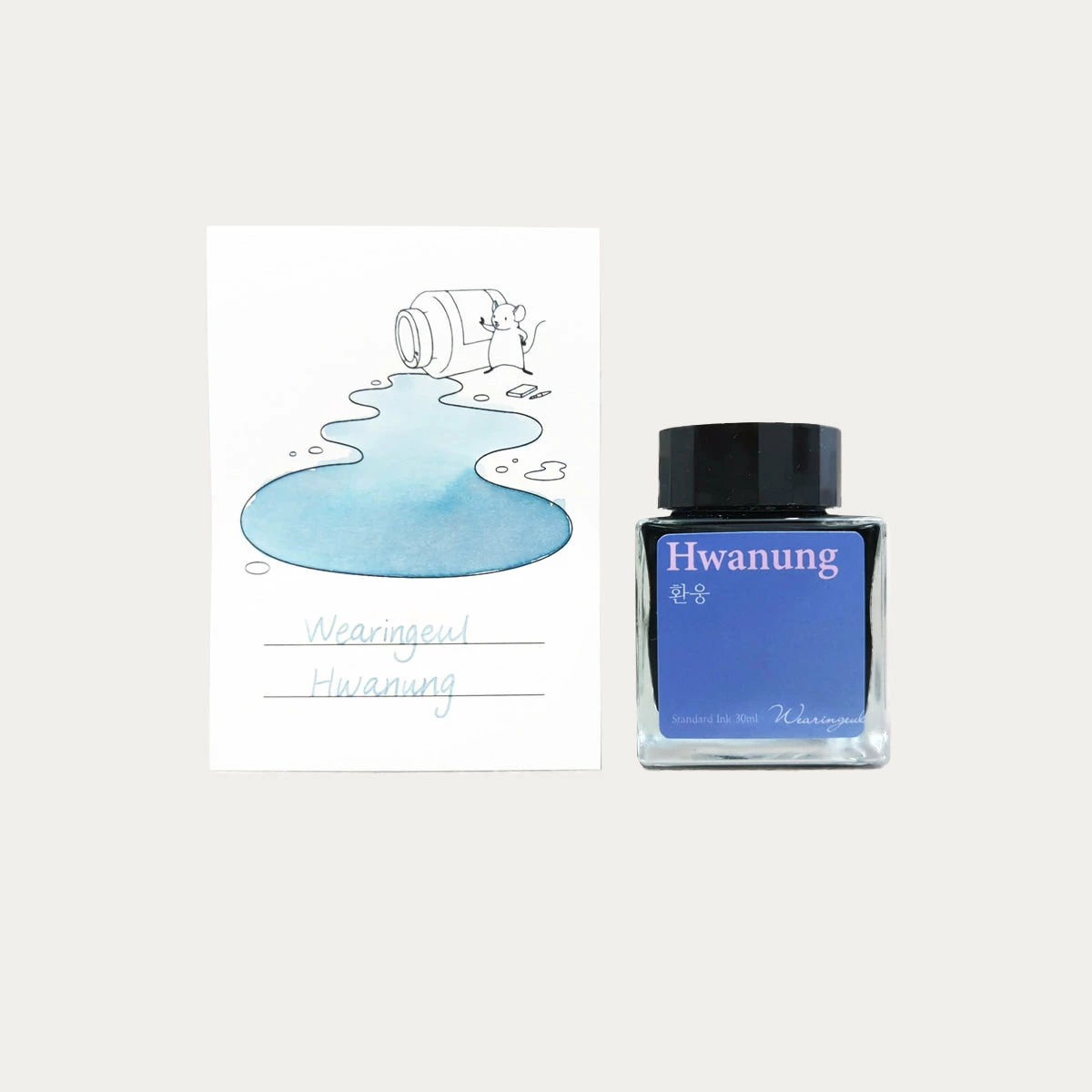Their Hwanung ink is named for the god Hwanung from Korean creation mythology. They describe it as the color of a windy and cloudy sky: a dusty twilight blue shading to dark violet tones.