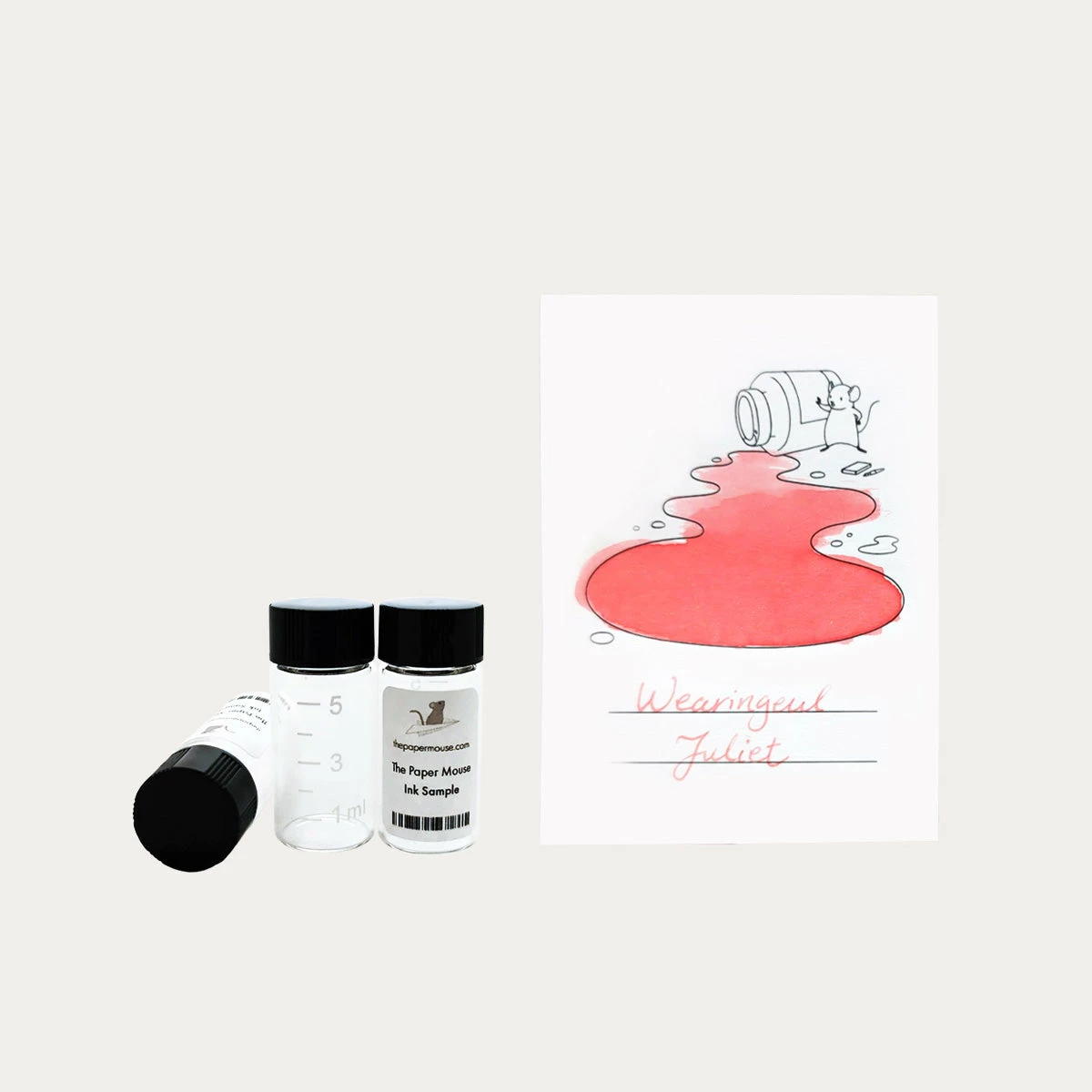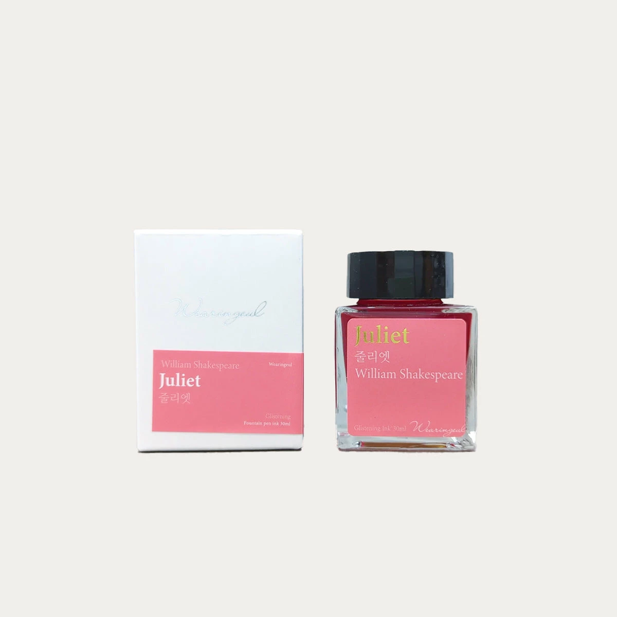 Their Juliet ink is based on the play by William Shakespeare. They describe it as the color of the happy fantasy of the lovers before tragedy strikes: a blooming, blushing pink with warm gold glitter.