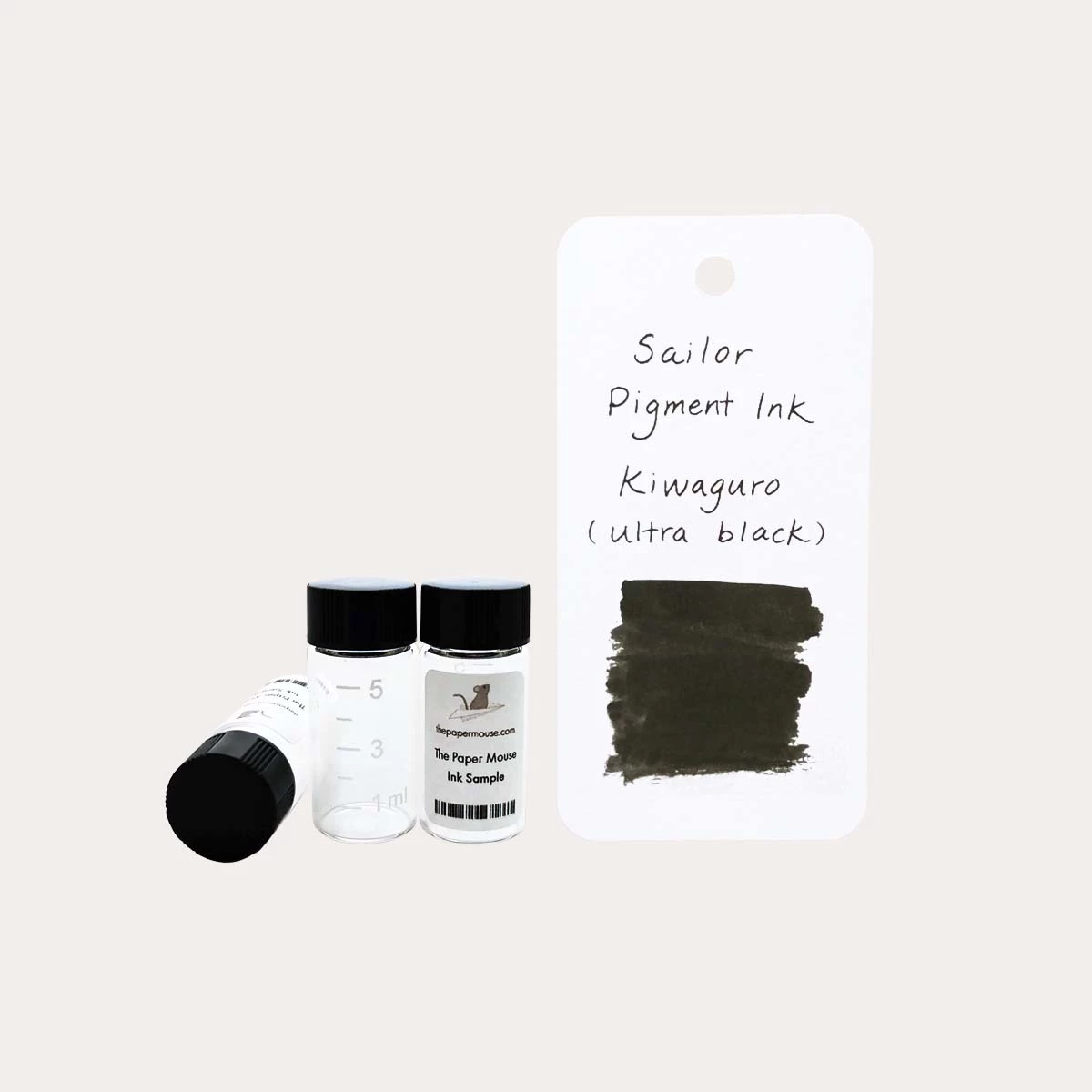 Sailor’s Pigmented inks are permanent and water-resistant, so they’re great for important letters and documents. Kiwaguro is a rich black color. Pigmented inks contain tiny particles which can clog up a pen if it sits for too long without writing, so it’s best to clean your pen regularly when using them.