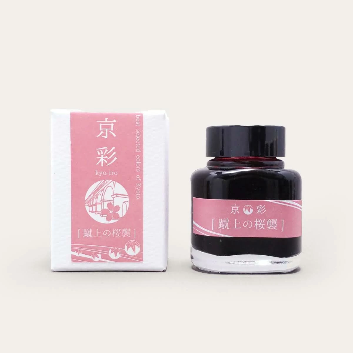 Kyo Iro inks are made in Kyoto, Japan. Made in small batches, their rich, complex colors are inspired by the historic sights of the city. “Cherry Blossom of Keage” is a deep dusty pink inspired by cherry blossom branches over the train tracks at Keage Incline.