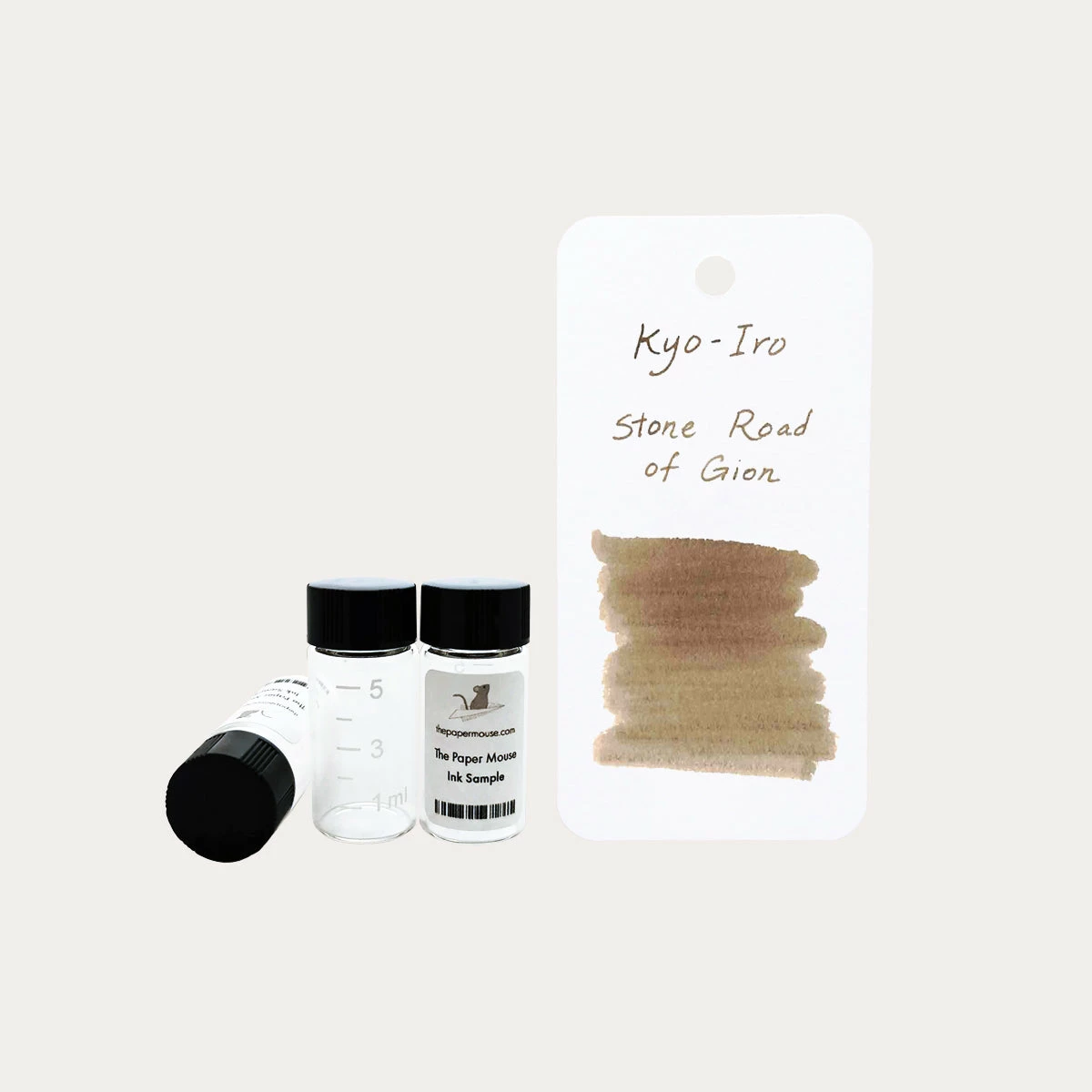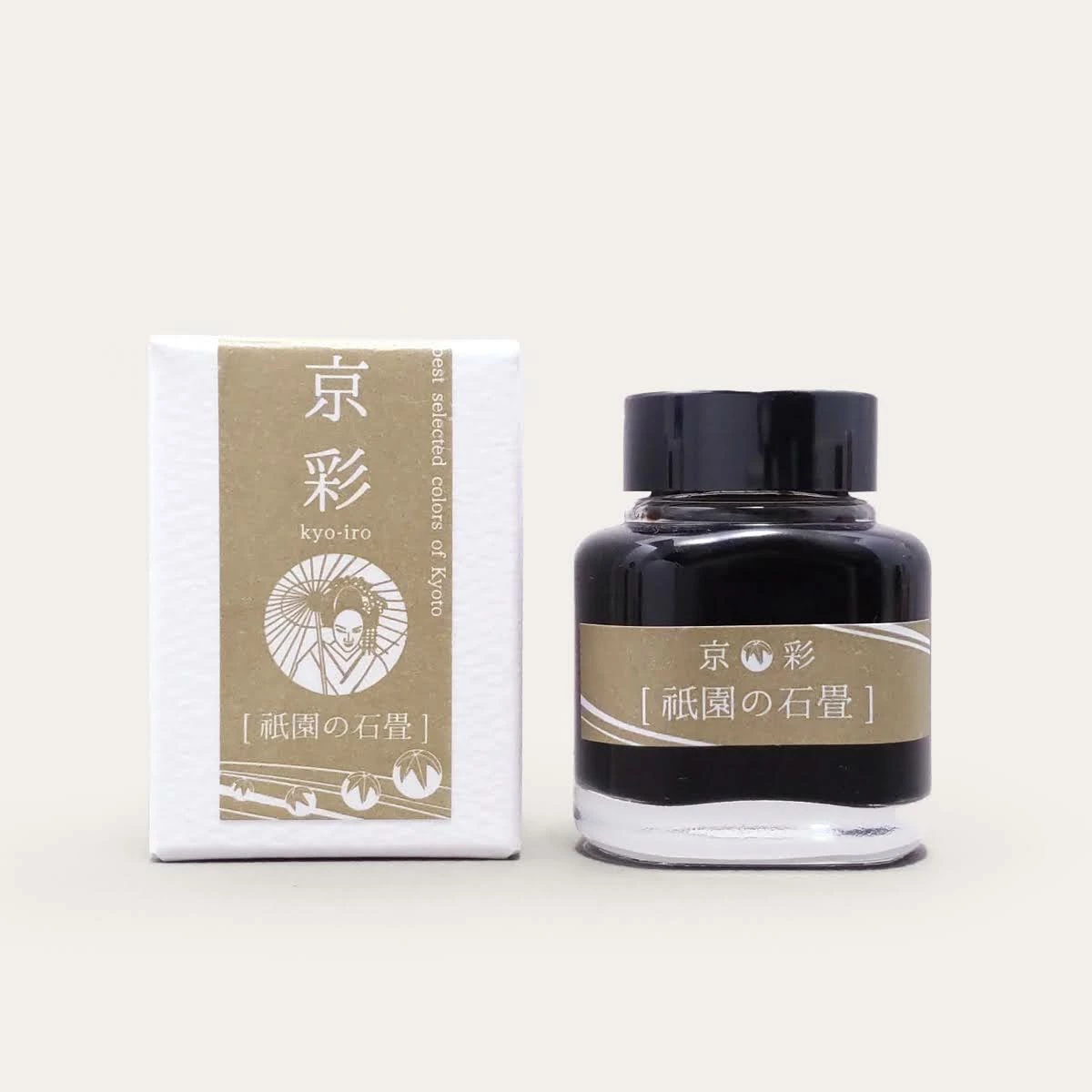 Kyo Iro inks are made in Kyoto, Japan. Made in small batches, their rich, complex colors are inspired by the historic sights of the city. “Stone Road of Gion” is a soft gray-brown inspired by the paving stones in the streets of the Gion district.