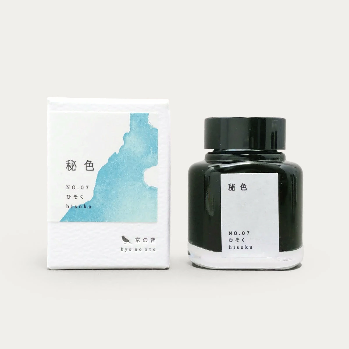 Kyo No Oto inks are made in Kyoto, Japan. Made in small batches, their rich, complex colors are inspired by the city’s scenery and culture. “Hisoku” is a light, grayish blue-green color inspired by traditional celadon pottery.