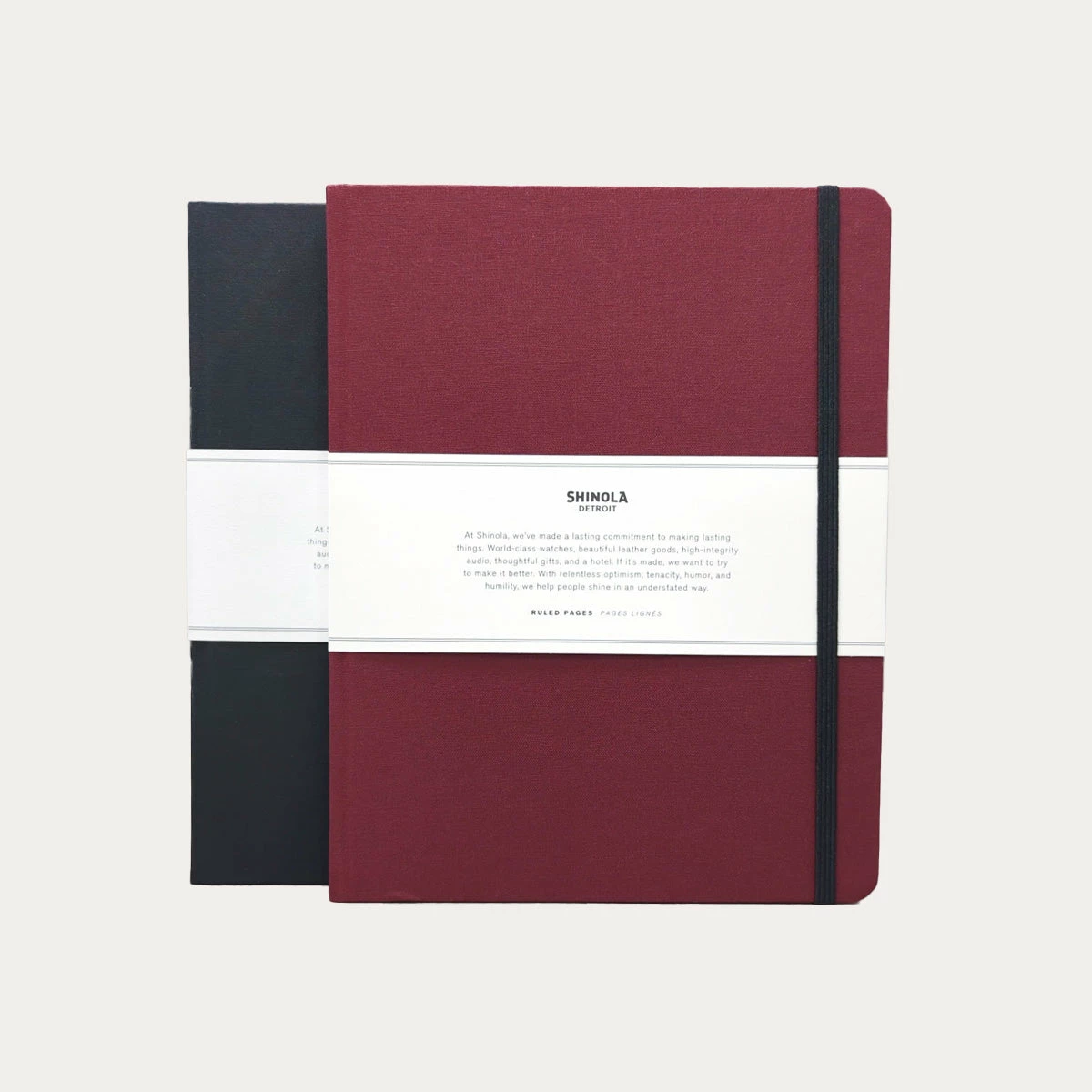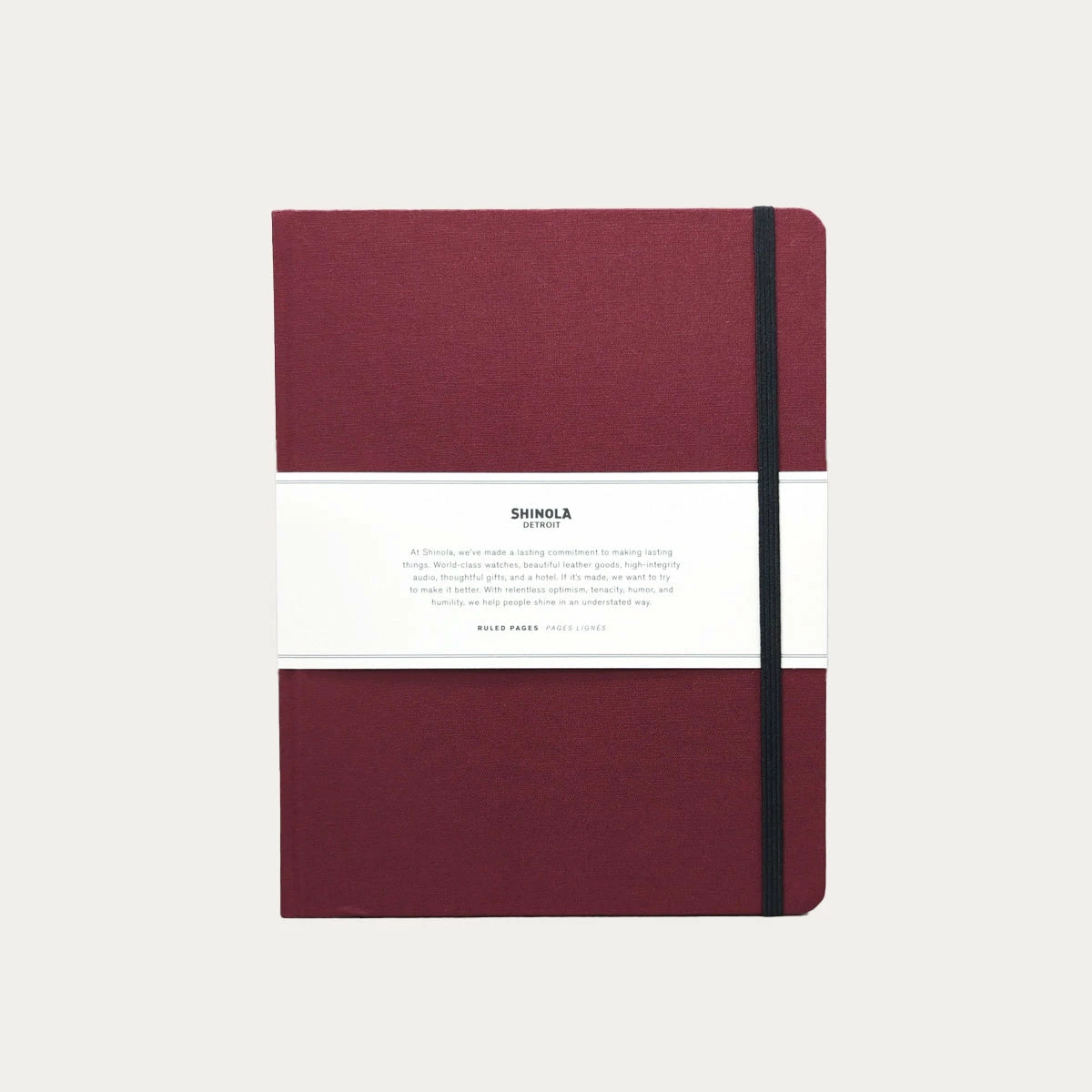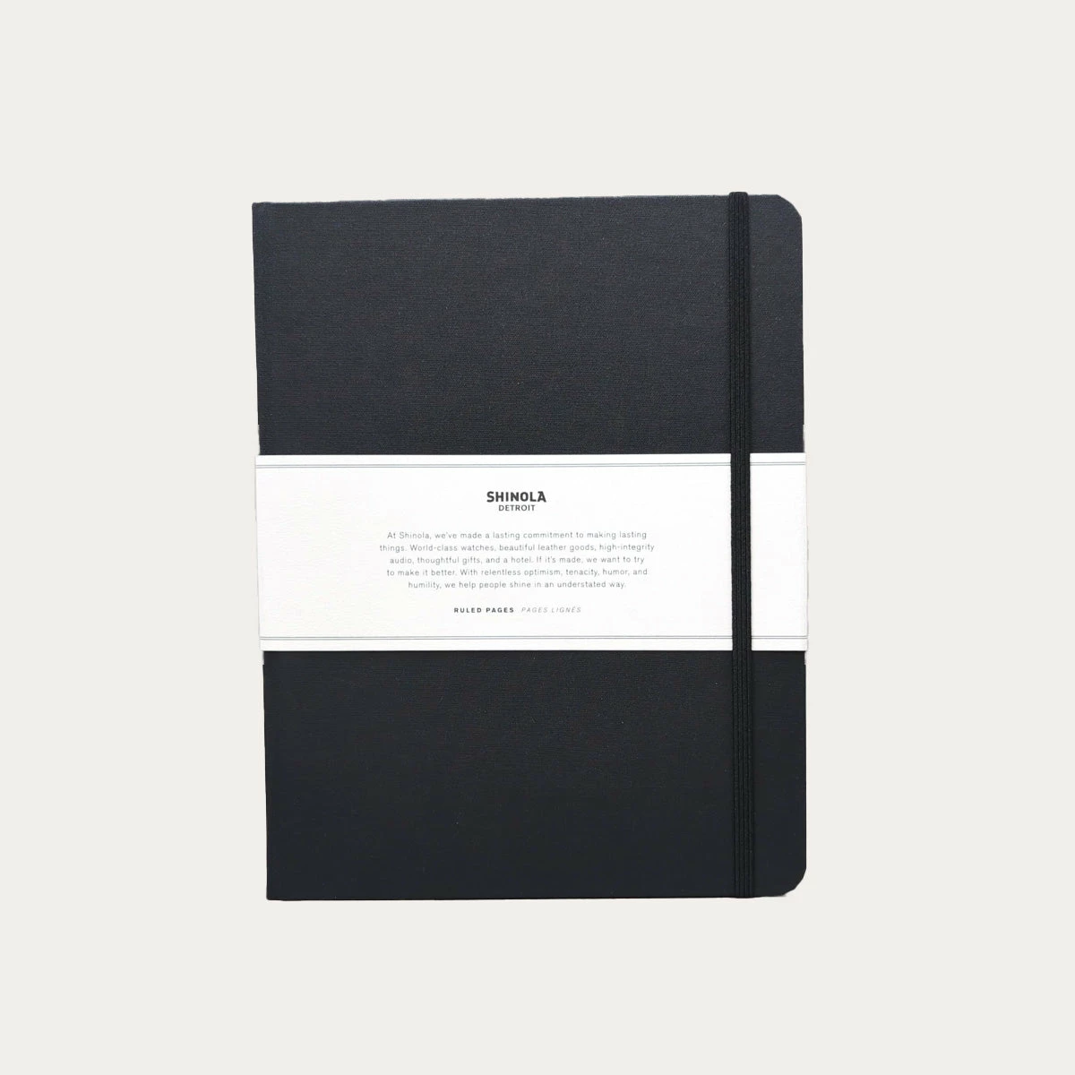 Shinola’s large linen notebook has elegant linen-bound hard covers, high quality sewn binding, and acid-free paper. The large-format lined pages provide plenty of room for journaling and note-taking at a comfortable size. A ribbon bookmark, elastic closure, and paper pocket in the back add to the pleasure of writing in this lovely notebook.