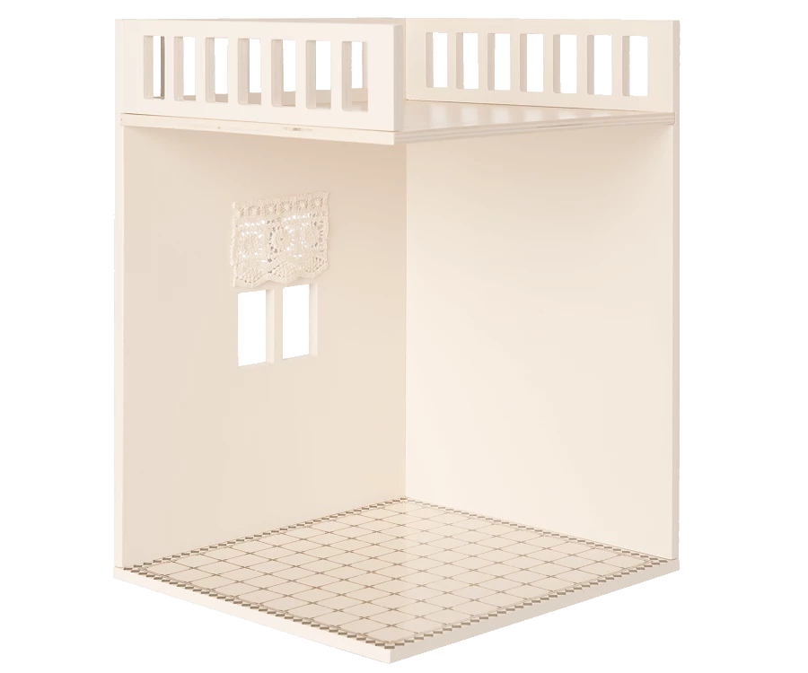 Add a sparkling new bathroom to your Maileg dollhouse! It’s even got a printed tile floor and little lace curtains for privacy. It’s perfect for mini or micro furniture.