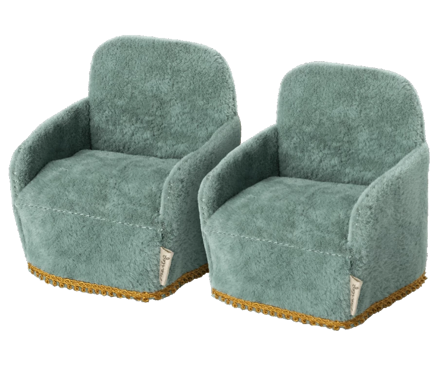 Your mice can settle down to read and relax in these cozy armchairs! They fit perfectly in the Maileg dollhouse.