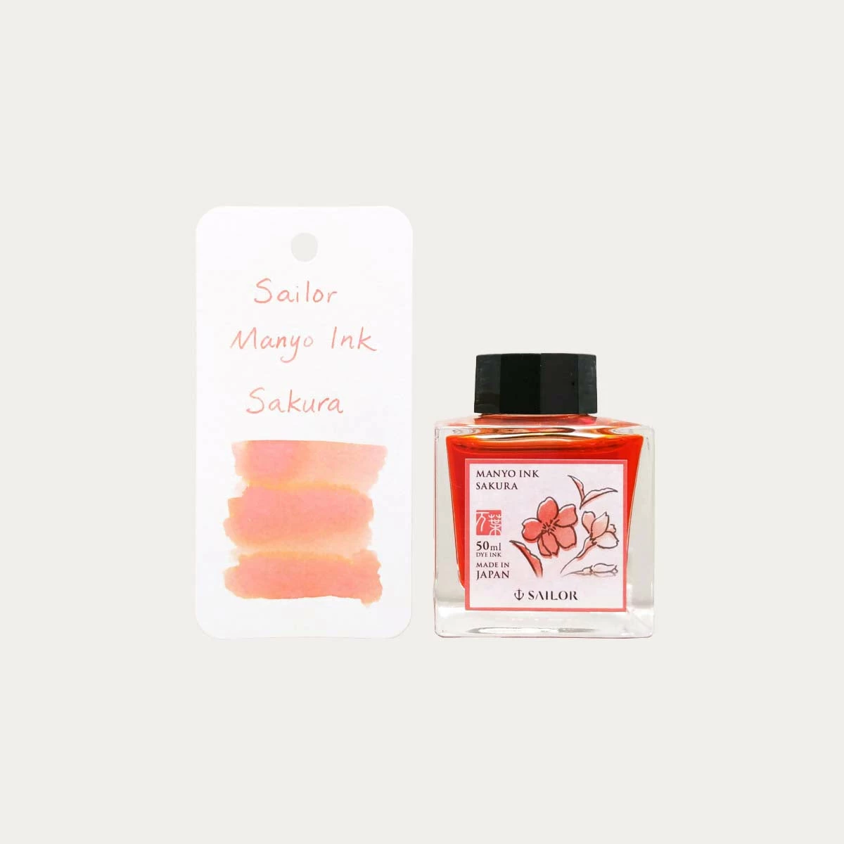 Sailor’s Manyo line of inks come in beautiful colors inspired by Japanese plants and flowers. They have dual-tone shading properties, meaning that on certain ink-resistant papers, they reveal multicolored undertones. Their Sakura ink is a soft pink color with orange undertones.