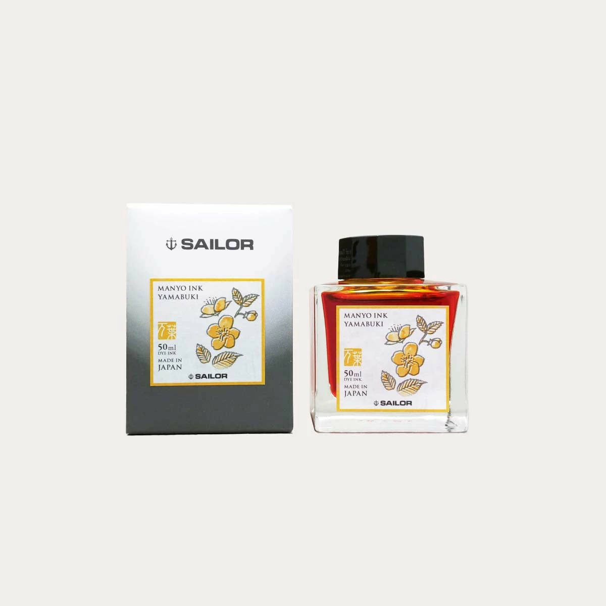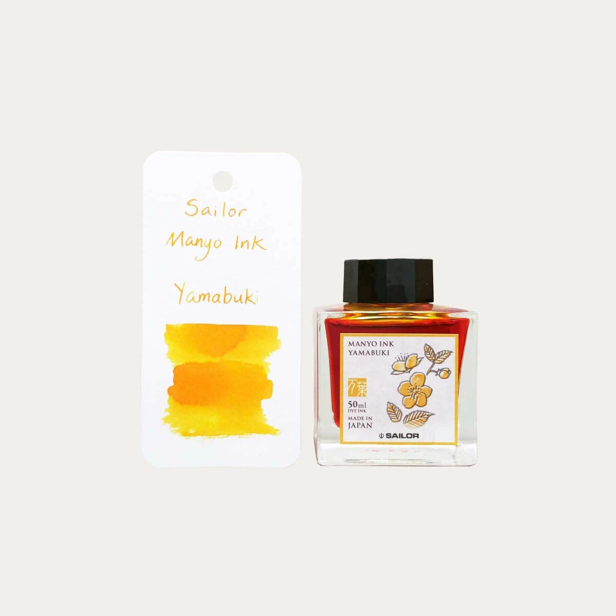 Sailor’s Manyo line of inks come in beautiful colors inspired by Japanese plants and flowers. They have dual-tone shading properties, meaning that on certain ink-resistant papers, they reveal multicolored undertones. Their Yamabuki ink is a bright sunflower yellow with orangey-red undertones.