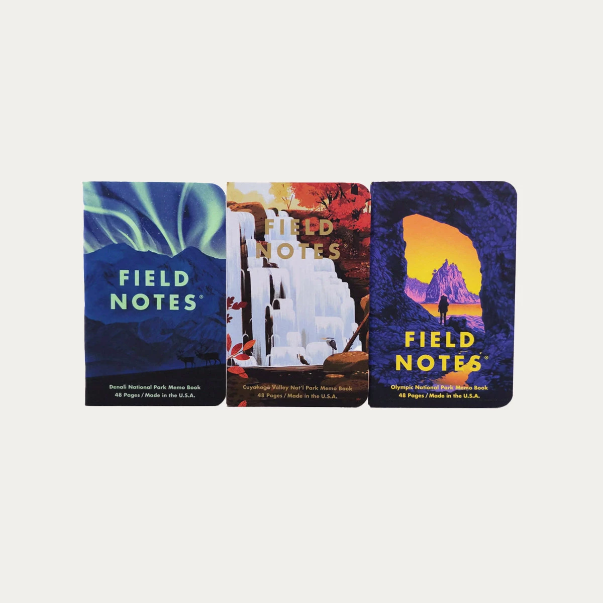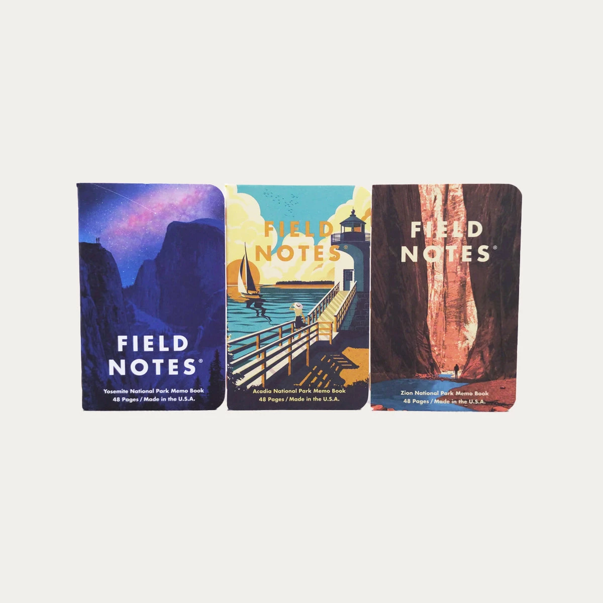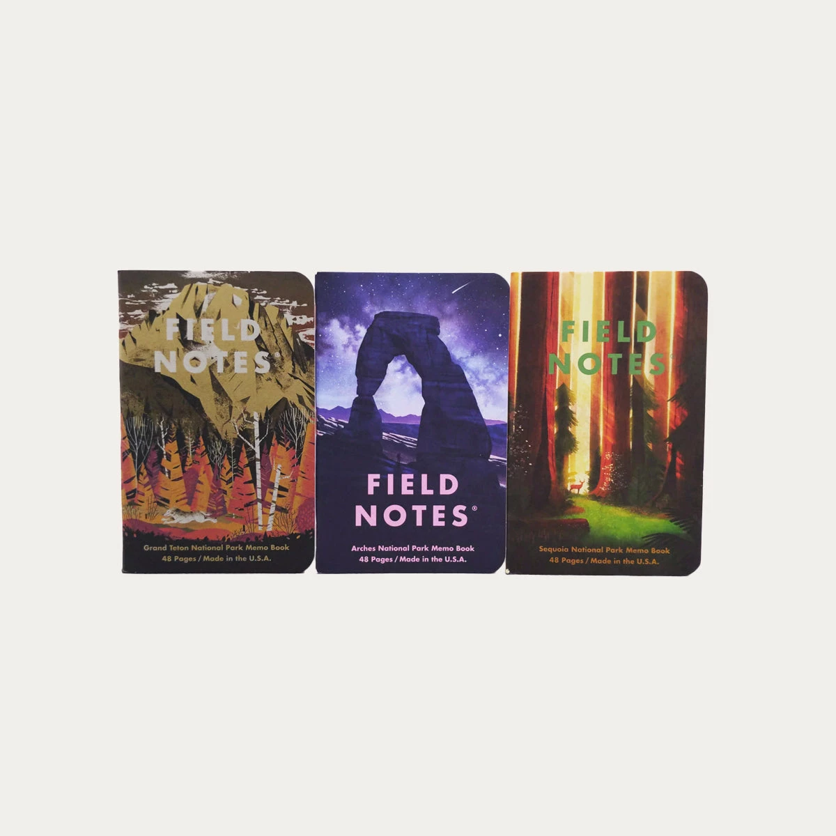 This limited edition series of Field Notes is a tribute to America’s National Parks. Each series of 3-packs features gorgeous illustrations of three different national parks on its covers.