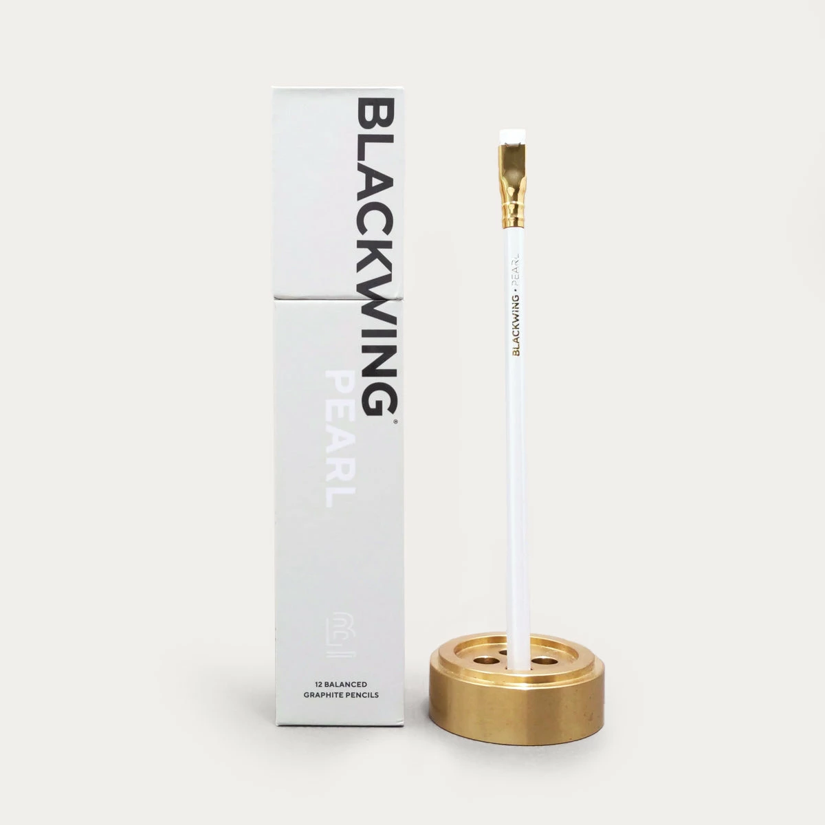 One of Blackwing’s four core pencils, the Pearl pencil features a balanced and smooth graphite core that is softer than the graphite found in the Blackwing 602, but firmer than the graphite found in the Blackwing. It has a pearl white finish, gold imprint, white eraser, and the iconic square Blackwing ferrule. Blackwing Pearl pencils come in a 12-pack gift box that doubles as a pencil cup.