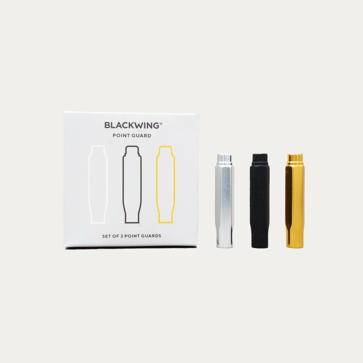 Made of lightweight aluminum, Blackwing point guards are designed to protect your pencil points inside a bag or pocket so they always stay sharp and ready to write.