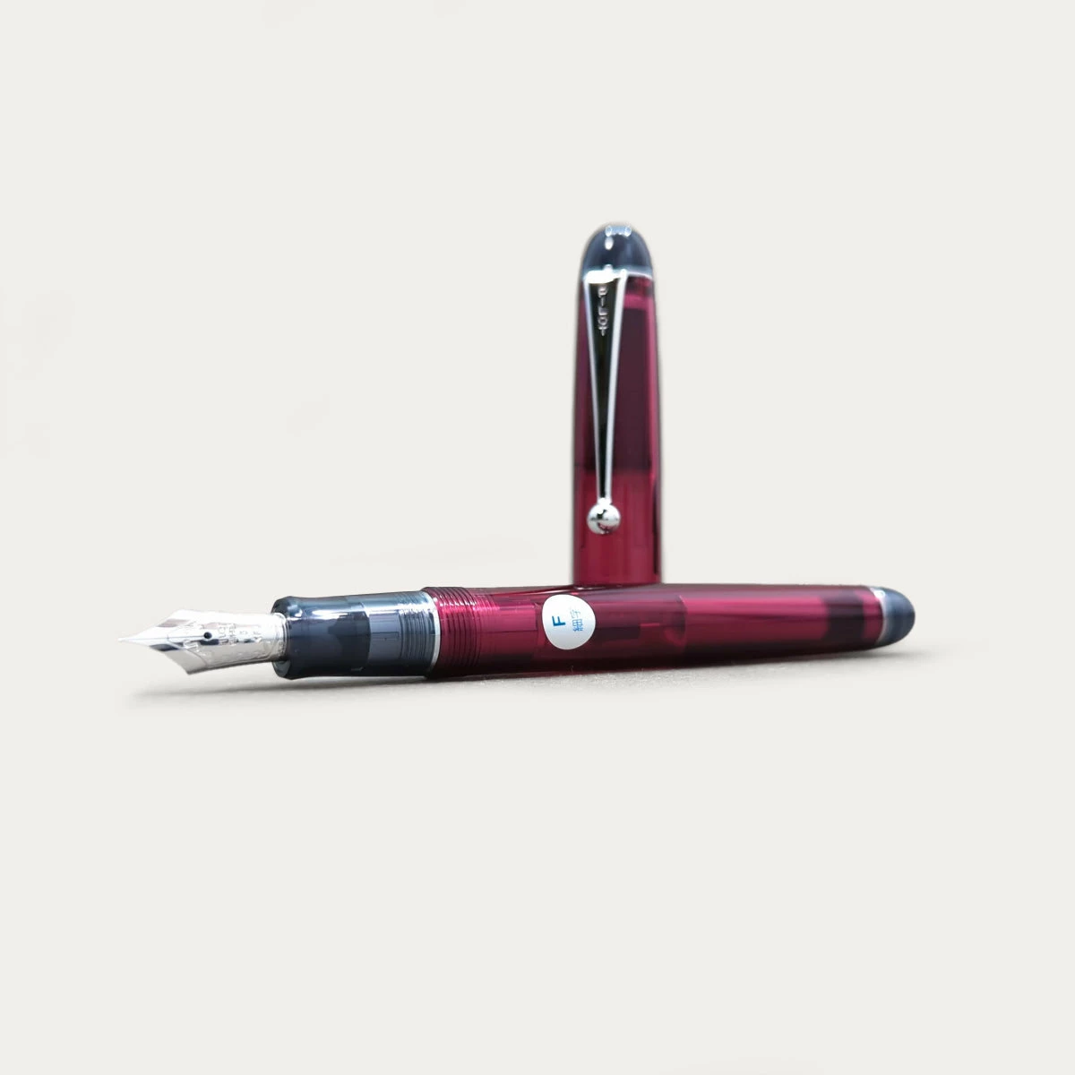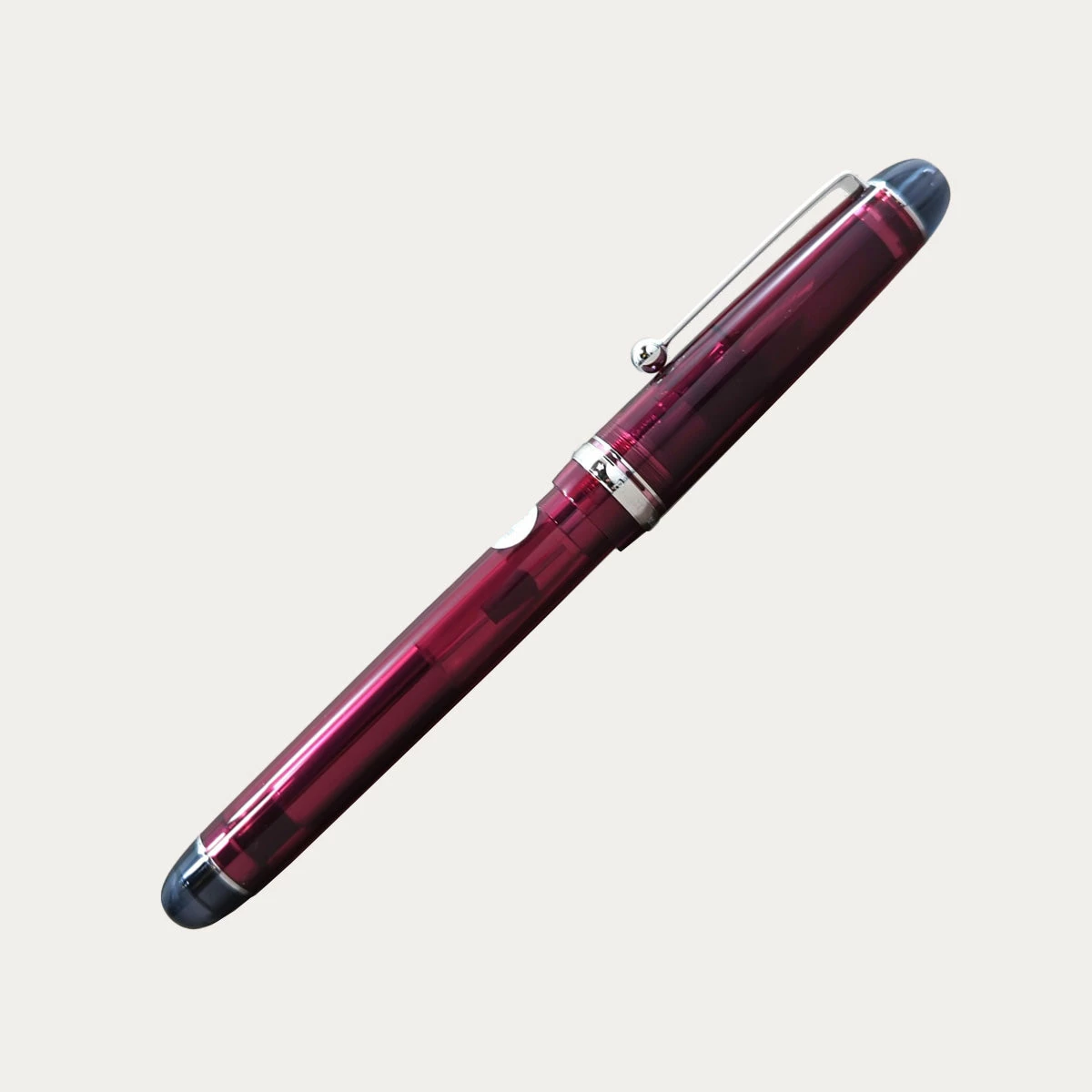 The Pilot Custom 74 is a lovely translucent demonstrator pen with a two-toned design and silver trim that give it the appearance of stained glass. The pen’s shape features rounded ends and gentle curves, echoed in the ball-shaped end of the metal clip. It has a a resin body with a screw-on cap, topped with a rhodium-plated 14k gold nib that provides a wonderful writing experience. The Custom 74 is compatible with Pilot ink cartridges and also comes with a high-capacity CON-70 pump converter for using bottled ink.