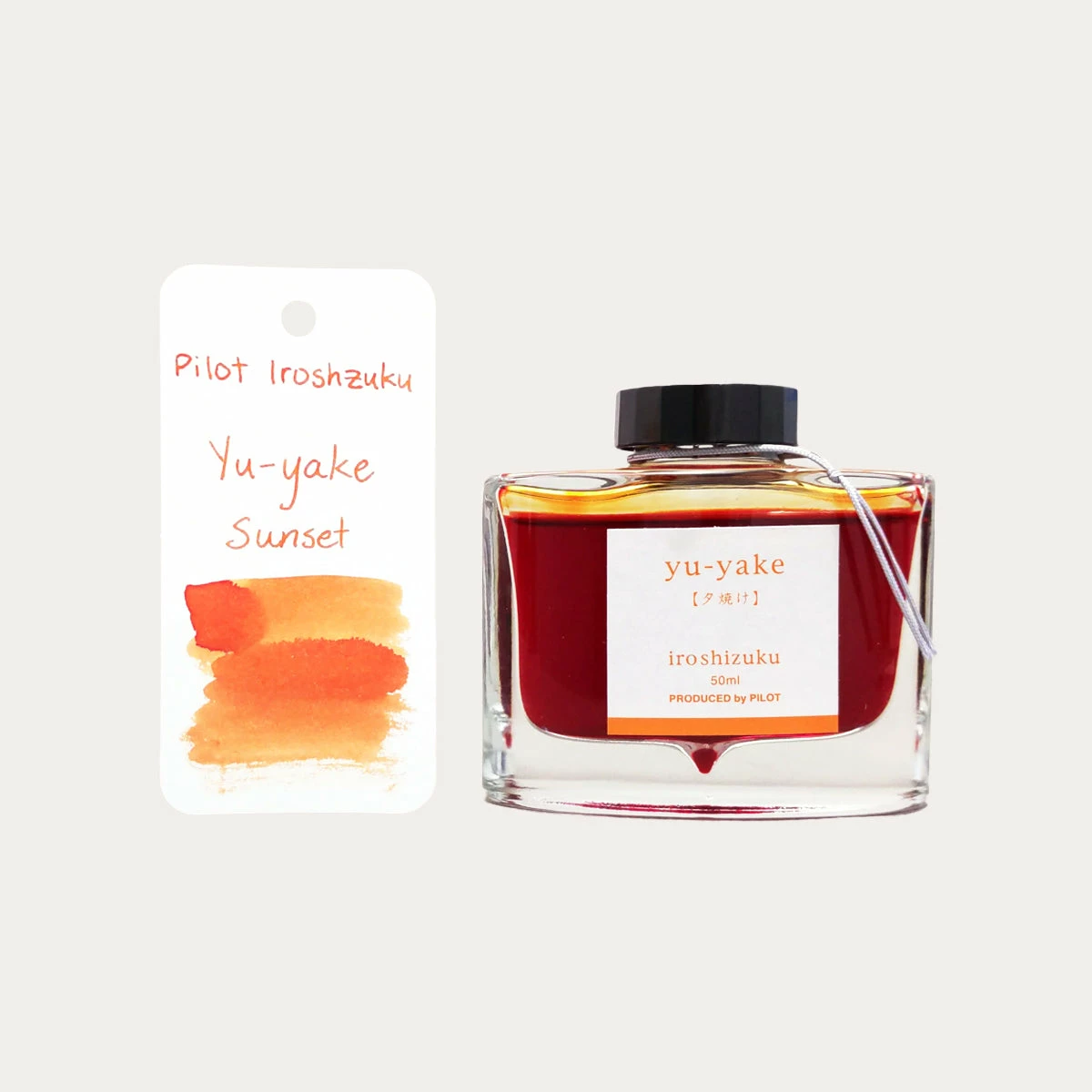 Iroshizuku inks are high-quality, dependable inks in gorgeous colors that reflect the natural scenery of Japan. “Iroshizuku” means “color droplets,” and each ink color is inspired by some element of nature in the Japanese landscape. They look gemlike in their wide glass bottles, designed with a clever dip at the bottom so you can access the very last drops of ink inside. Yu-yake is the vibrant red-orange of a sunset.