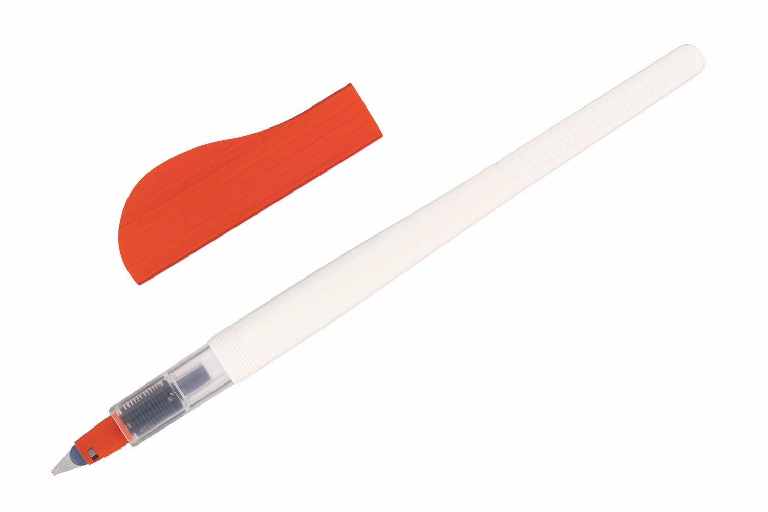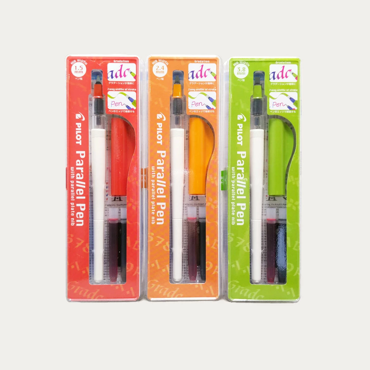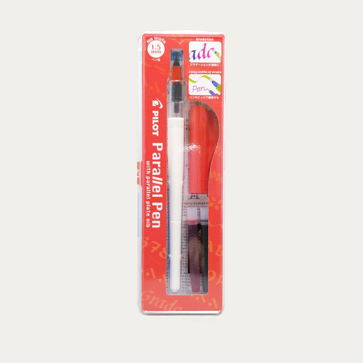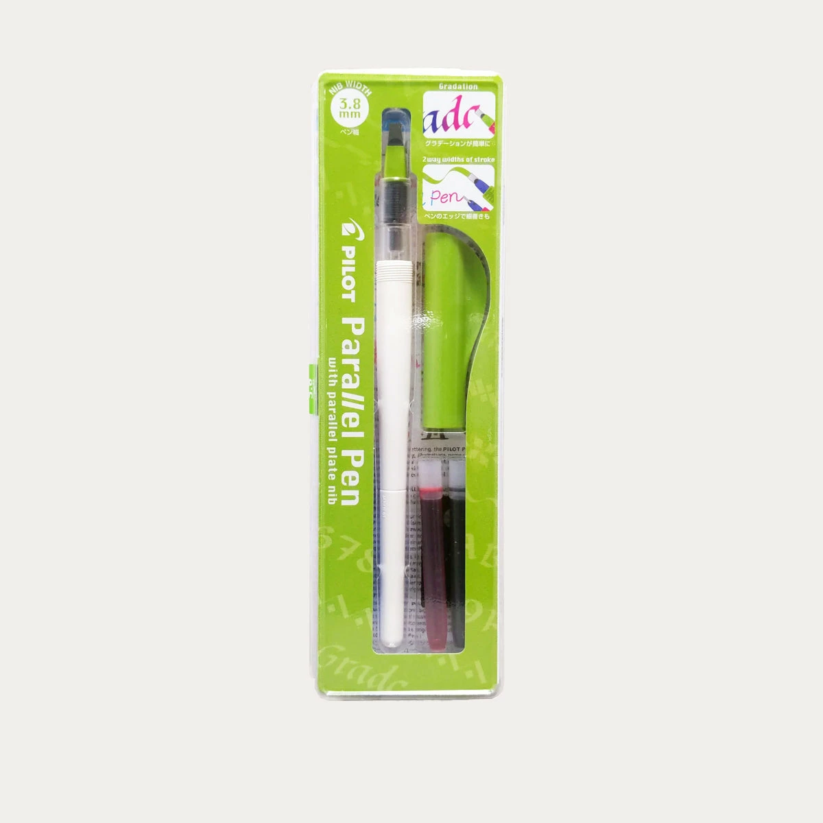 The Pilot Parallel calligraphy pen is a great tool for beginning and experienced calligraphers alike. Its unique nib has parallel metal plates that allow ink to flow out smoothly, and the nib comes in a variety of widths for different writing styles. The Parallel pen also allows for color blending and mixing: just touch the nibs of two different Parallel pens together, and their inks will flow into each other, allowing you to create beautiful color gradations as you write.