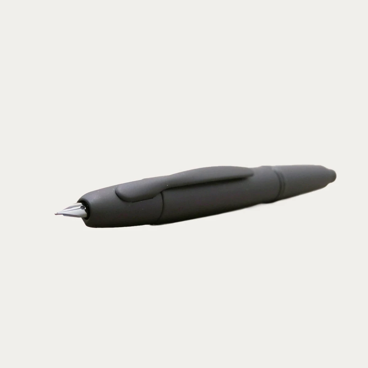 The Pilot Vanishing Point fountain pen blends the convenience of retractable ballpoint pens with the smoothness and class of a fountain pen. A spring-loaded door inside the pen keeps the nib tightly sealed when it’s retracted, so the ink will stay wet and ready to write. Its nib is made of 18k gold and the body is made of pleasantly weighty brass.