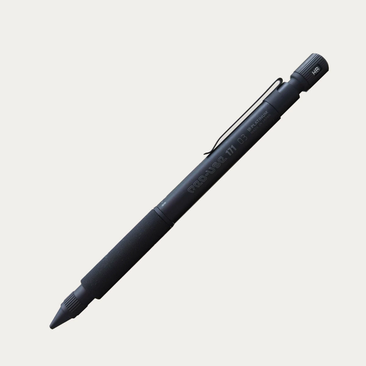 The Pro Use 171 pencil features a lead grade indicator so you always remember what type of lead you have loaded in your pencil. The body of the pencil is made of resin, with a knurled metal grip and a metal clip and nose cone.