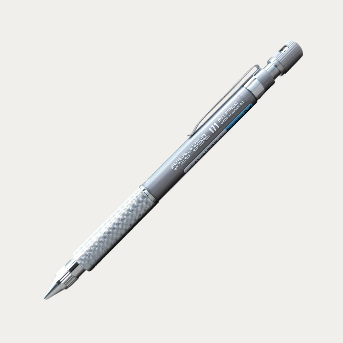 The Pro Use 171 pencil features a lead grade indicator so you always remember what type of lead you have loaded in your pencil. The body of the pencil is made of resin, with a knurled metal grip and a metal clip and nose cone.