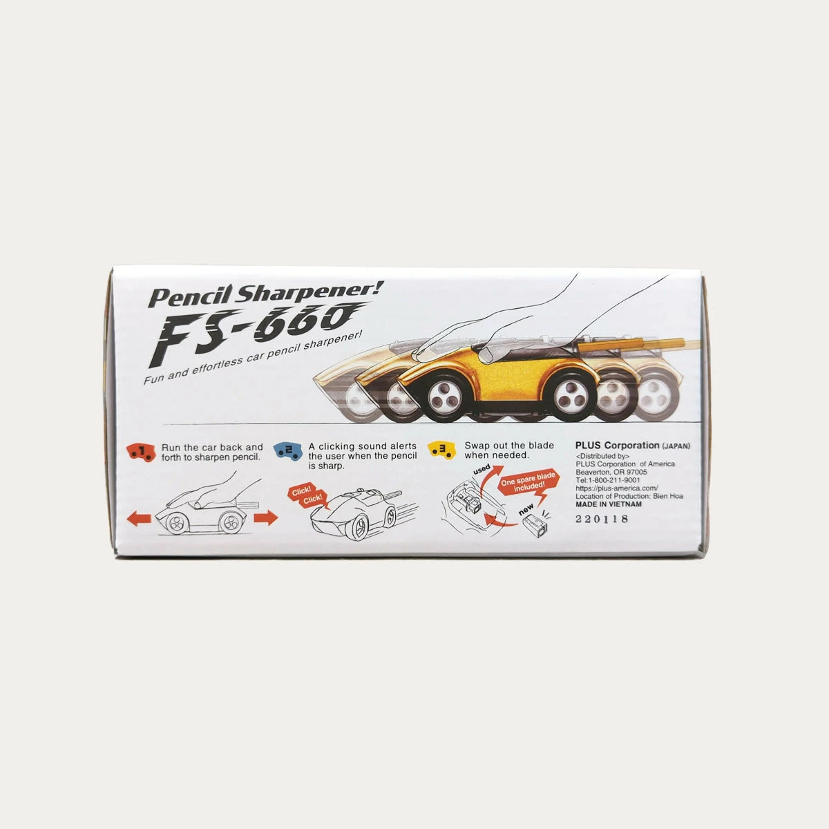 Stick a pencil in this car sharpener and drive it back and forth across your desk to get a perfect point! Push down the tab on top to unlock the sharpener and insert your pencil, then lock it while you drive around. The sharpener will make a clicking sound when your pencil point is nice and sharp.