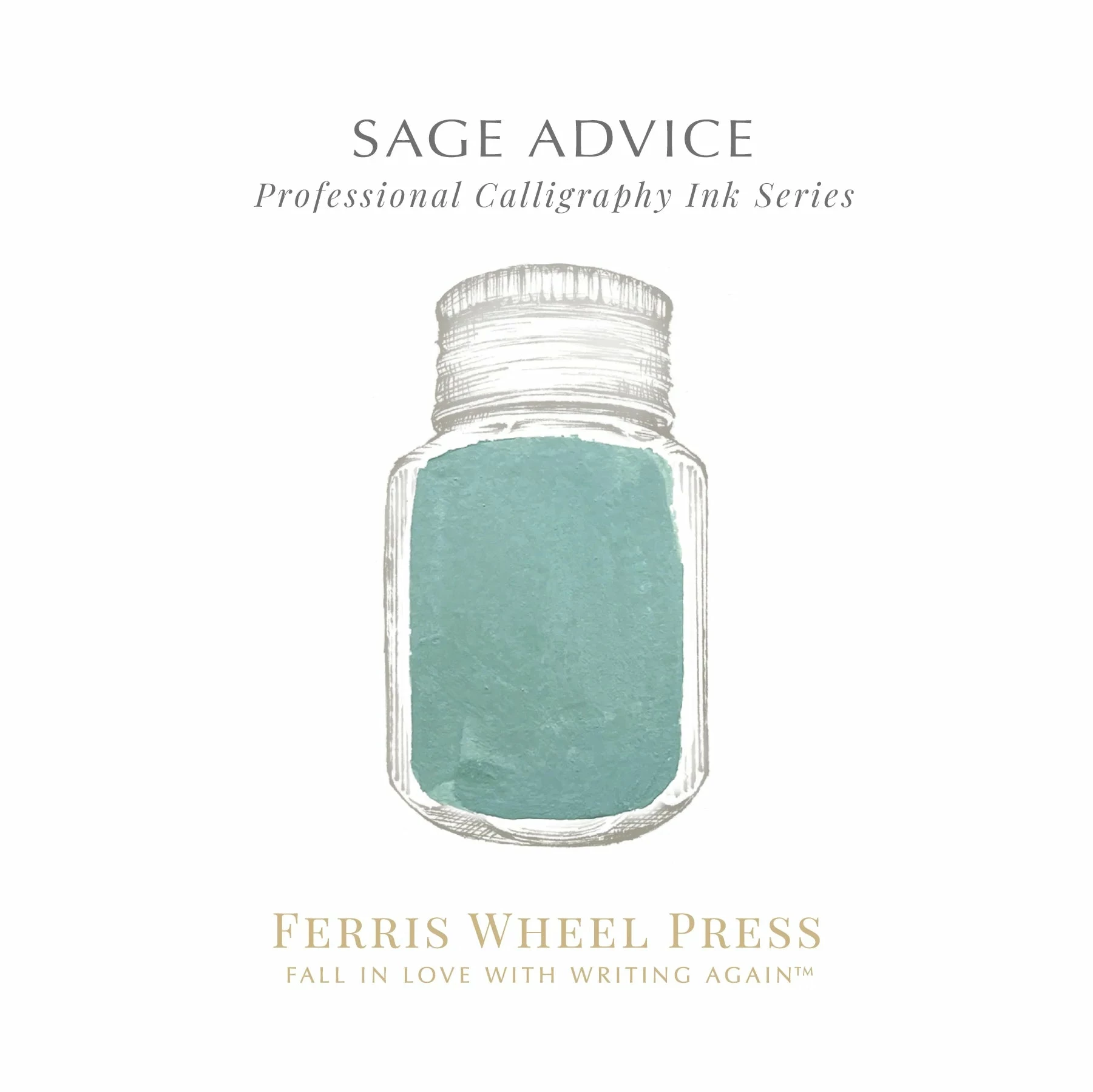 Ferris Wheel Press’s waterproof, opaque calligraphy inks are richly colored inks that are perfect for writing cards and invitations. Use them with dip pens or brushes to practice your most beautiful calligraphy. Sage Advice is a fresh sage green color.