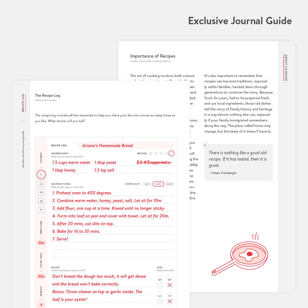 Baronfig’s Savor Recipe Journal helps you log your favorite recipes and keep notes on your culinary adventures. A guided journal, its pages help you log useful information like prep time, cook time, servings, and course categories as well as ingredients, instructions, and dietary notes. The journal features Baronfig’s signature cloth binding, an elastic closure and cloth bookmark, and sewn binding that opens flat.