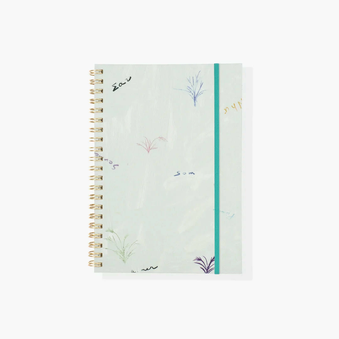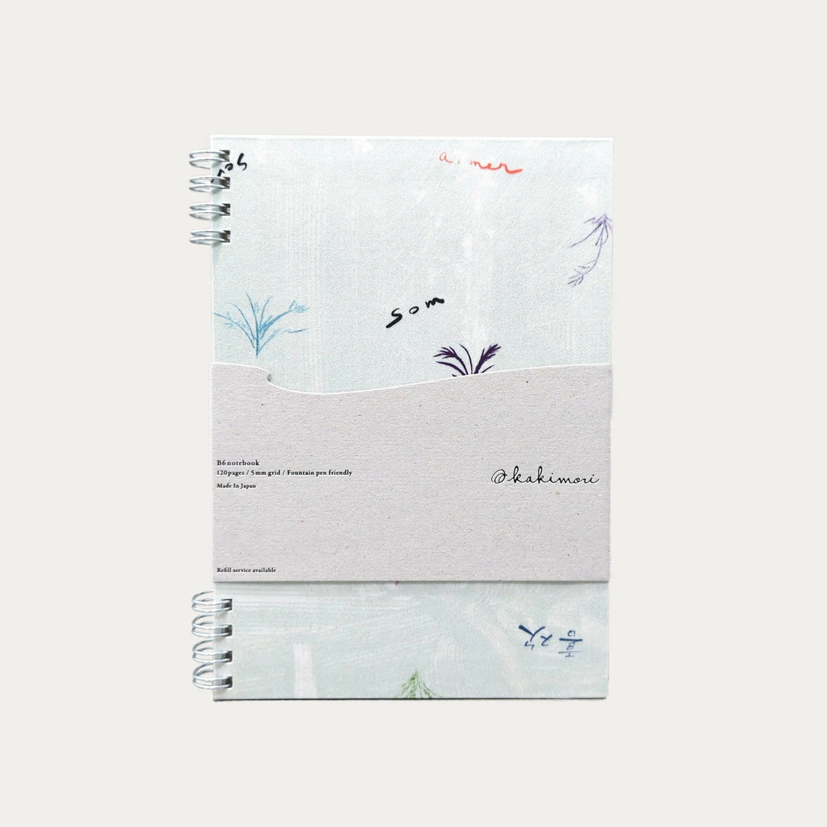 Kakimori’s sweet notebooks have cardboard covers bound in soft fabric, with spiral binding that can open flat or fold back to take up less space. The 5mm grid paper inside has soft blue lines and it’s smooth and fountain pen friendly.